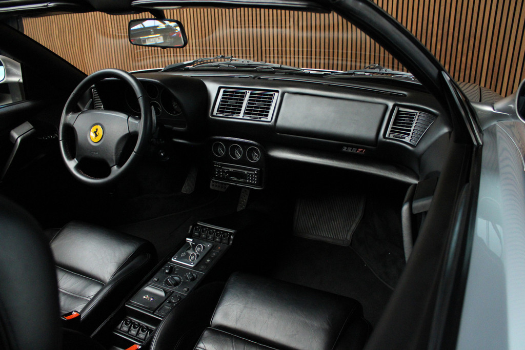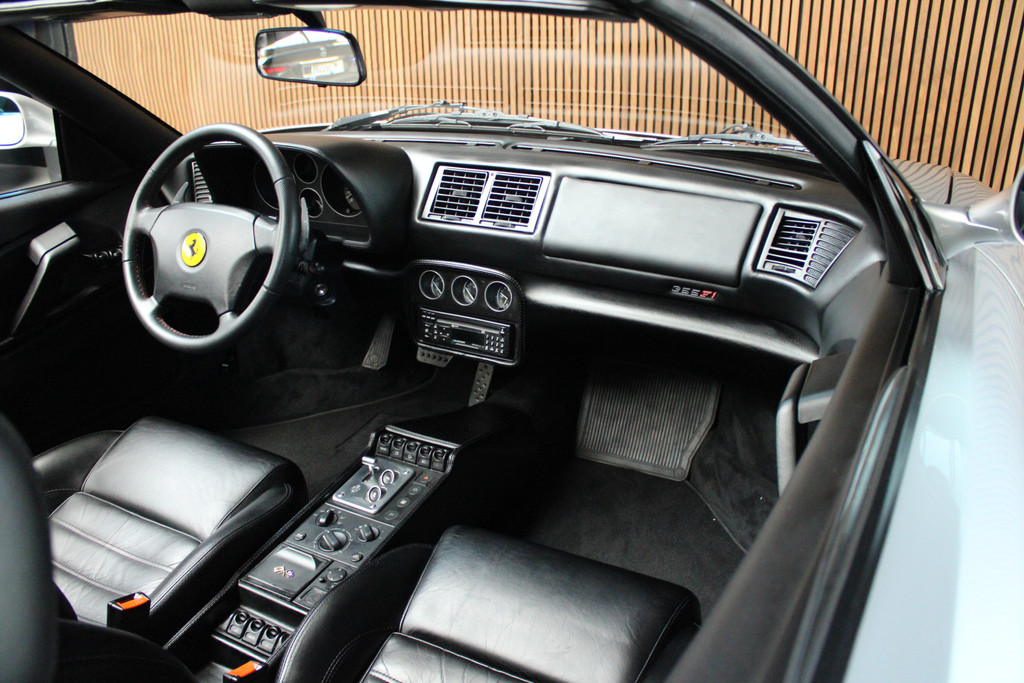 Zodra de zon zich laat zien, kunt u heerlijk genieten achter het stuur van deze cabriolet. U rijdt gemakkelijk, comfortabel en zonder zorgen met deze Ferrari F 355. De krachtige benzinemotor van deze auto is gekoppeld aan een automatische transmissie. Het met leer beklede interieur geeft deze auto een gedistingeerde uitstraling. De techniek staat voor niets: het gebruiksvriendelijke dak gaat elektrisch open of dicht. U wordt in deze auto ook getrakteerd op 18 inch lichtmetalen velgen, sportuitlaat, getint glas, elektrisch bedienbare ramen en elektrisch verstelbare buitenspiegels.