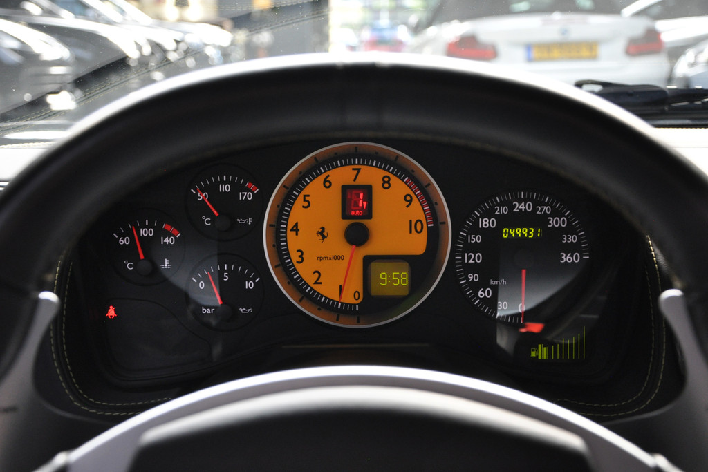 U weet altijd waar u moet zijn, dankzij het navigatiesysteem. De parkeersensoren registreren alles. Ook dat ene paaltje dat net buiten uw gezichtsveld valt. Ook is de Ferrari uitgerust met: met leder bekleed dashboard, F1-schakelflippers op het stuurwiel en centrale portiervergrendeling.