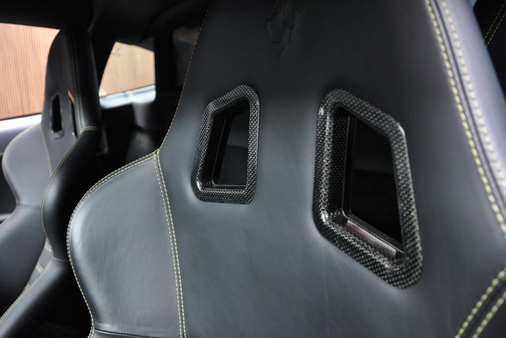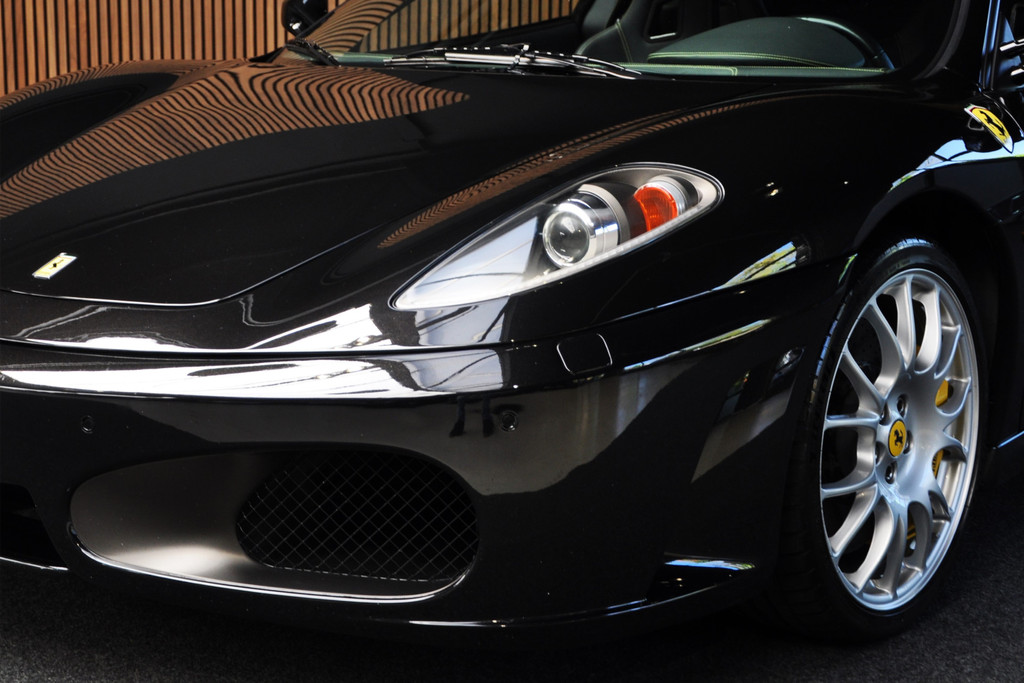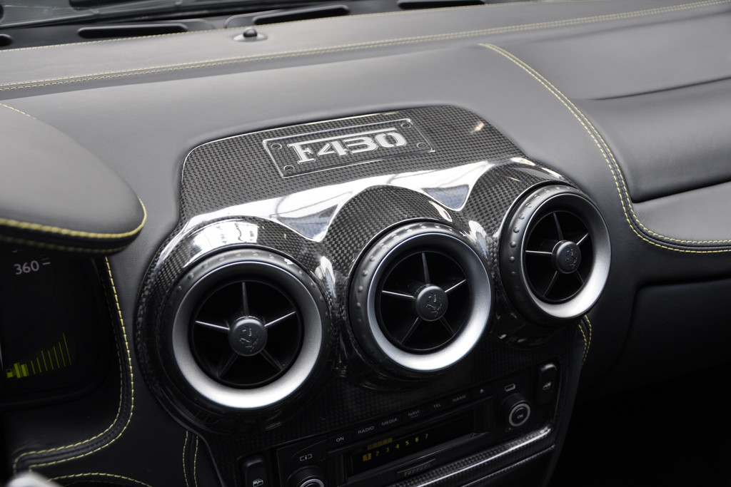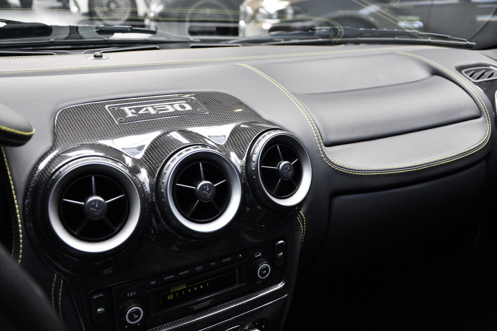 Deze F430 is uitgevoerd in de schitterende kleur 'Nero Daytona' WB 508, de donkere metallic lak is erg mooi in combinatie met het zwart lederen interieur welke is uitgevoerd in het 'Nero 8500' . Wat nog meer mooi op elkaar afgestemd is zijn de gele remklauwen op het keramische remsysteem wat weer combineert met de gele stiksel die in het volledige interieur terug te vinden zijn, zowel in het lederen dashboard als in het lederen middenconsole. Verder is het interieur mooi afgewerkt met diverse carbon interieurdelen, naast de carbon interieurdelen is de auto ook voorzien van carbon sportstoelen. Het exterieur van de auto wordt voorzien van een paar mooie 19 inch wielen, maar niet zomaar een set wielen, 19 inch Challange Stradale velgen! dit voor een nog sportievere look!