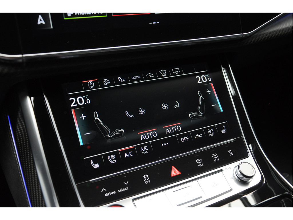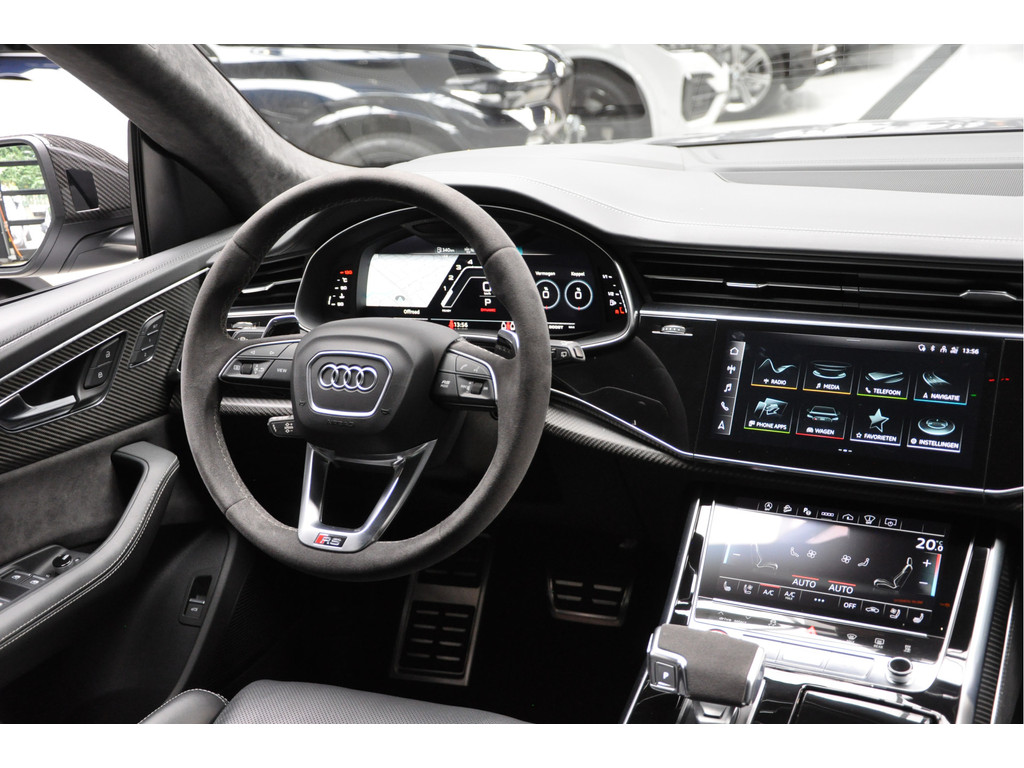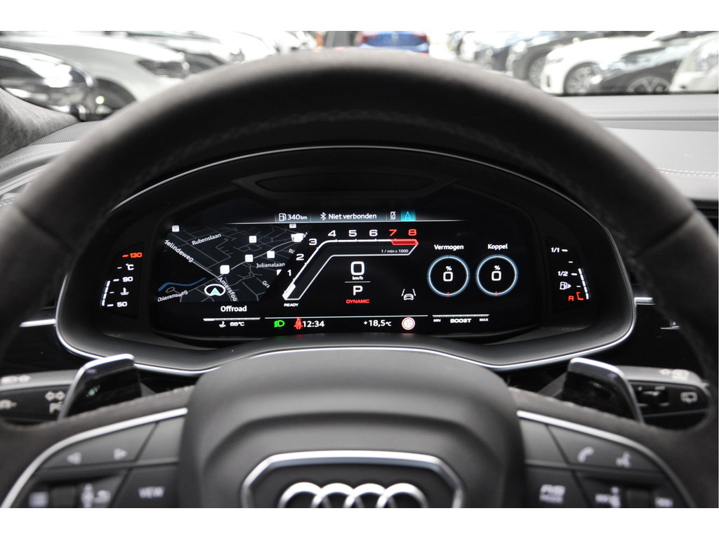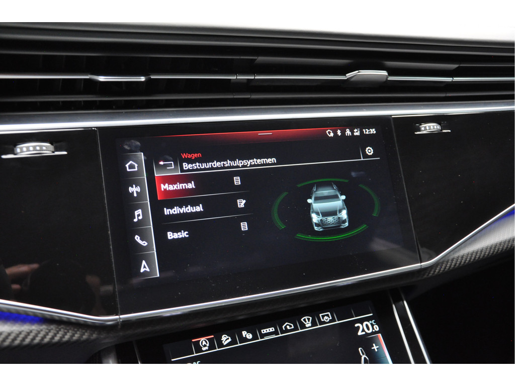 Het digitale dashboard ondersteunt u voortdurend met actuele, bruikbare informatie. Door het combineren van beelden van vier camera's, biedt de 360 graden camera een naadloos en gedetailleerd beeld van de hele omgeving rondom deze auto. Adaptive cruise control houdt de ingestelde snelheid vast en houdt afstand tot het voertuig voor u. Rijden-stilstaan, rijden-stilstaan. Niks is irritanter en vermoeiender dan filerijden. Daar heeft deze Audi RS Q8 een oplossing voor: de file assistent, die met radarmeting permanent het tempo aanpast op de voorligger. Zelfs als die stopt. Pech oplossen en zelfs voorkomen? Gaat eenvoudig. Via Connected Services heeft u alle data in de hand, gewoon op de smartphone! Extra opties op deze auto zijn: high performance audiosysteem, full map navigatiesysteem, kruisend verkeer detectie, electronic climate control, draadloos opladen en DAB ontvangst.