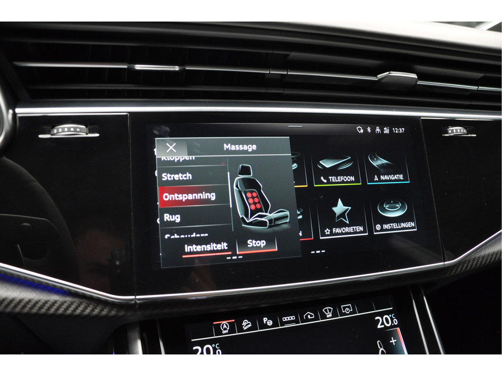 U rijdt gemakkelijk, comfortabel en zonder zorgen met deze Audi RS Q8. Het is een auto van het bouwjaar 2021. Op de teller van deze auto staat slechts 19585 kilometer. Met een achtcilinder benzinemotor en een automatische transmissie beschikt deze Audi over uitstekende prestaties. Iedere oneffenheid in de weg wordt geëlimineerd door de uitstekende luchtvering. Gladde weg, natte weg, steile weg of ruige weg? De vierwielaandrijving trekt zich er niks van aan en je vervolgt probleemloos je route met deze 4WD! Verwen uzelf met het lederen interieur in deze auto. Voorin is het 's winters genieten met de verwarmbare voorstoelen. Deze hebben bovendien een massagefunctie, zodat bestuurder en bijrijder altijd fit en soepel uitstappen. U past de stoelen moeiteloos aan, ze zijn elektrisch in te stellen en hebben bovendien een geheugen. Een heerlijk zonnetje, of indrukwekkende wolkenpartijen? Bekijk ze onbelemmerd door het elektrisch bediende glazen panoramadak. Bij de uitrusting van deze auto horen onder meer trekhaak elektronisch wegklapbaar, LED matrix verlichting, adaptief dempingsysteem, warmtewerend glas, aluminium dakrailing en elektrisch inklapbare buitenspiegels.