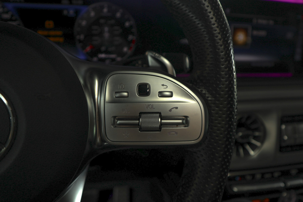 - Lederen multifunctioneel sportstuurwiel met schakelbediening en een AMG logo