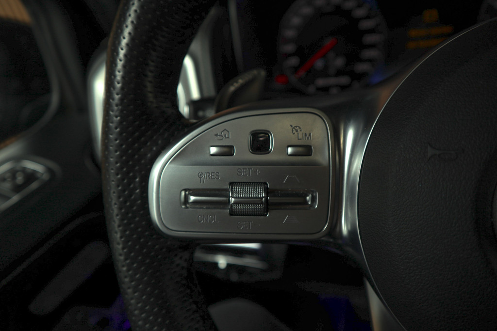 - Lederen multifunctioneel sportstuurwiel met schakelbediening en een AMG logo