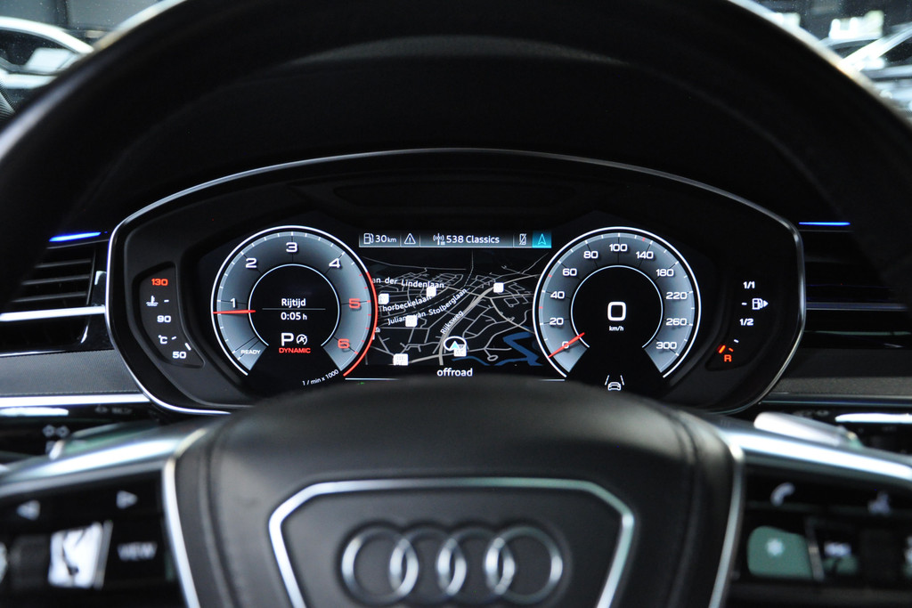 U leest alle belangrijke functies helder af dankzij het digitale dashboard. Het gebruik van de 360 graden camera op deze auto helpt u bij het navigeren door lastige rijbanen en het drukke stadsverkeer. Met adaptive cruise control houdt de auto zelfstandig afstand tot uw voorligger. Een veiligheidsverhogende optie waarmee u comfortabel onderweg bent. Het infotainmentsysteem bedient u met uw vingers of met uw stem, met dank aan de geïntegreerde stembediening. Als u 'm vraagt 'hoe gaat het?' geeft deze auto zelf het antwoord. U checkt de meters waar u maar wilt, of activeert diverse functies alvast. Met high performance audiosysteem, navigatiesysteem met harde schijf, WIFI-hotspot, electronic climate control, sportstuur met schakelpaddels en draadloos opladen is deze Audi helemaal compleet.