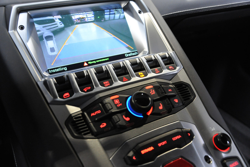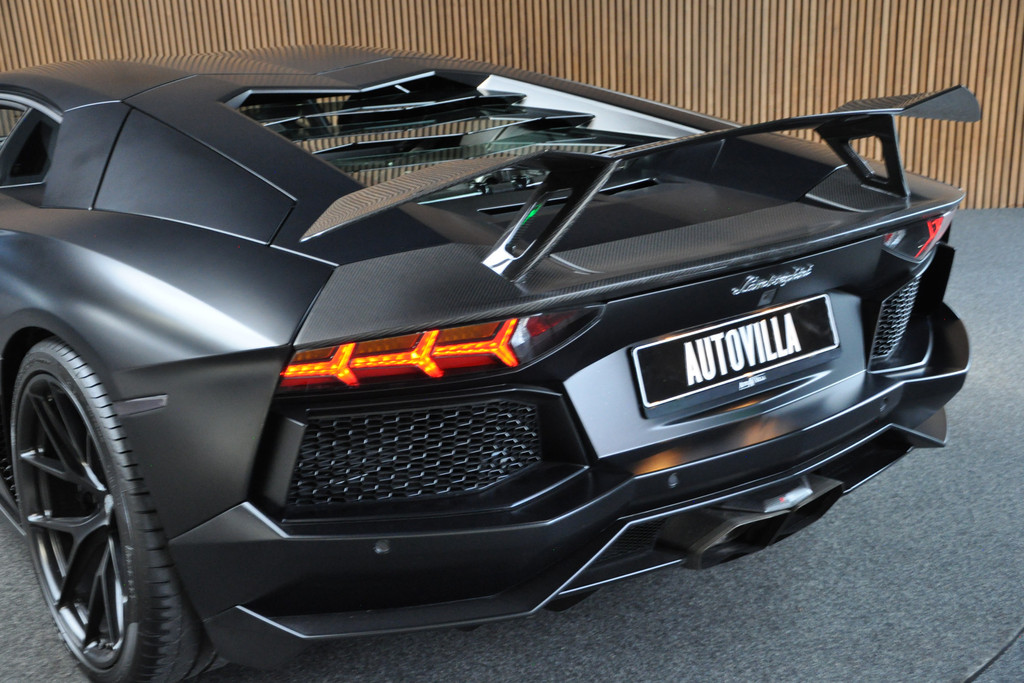 Unieke origineel Nederlands geleverde Lamborghini Aventador met Novitec carbon bodykit en Akrapovic sportuitlaat. Volledig dealeronderhouden met recent uitgevoerde 8-jarenbeurt.. De legendarische vechtstier waar deze Lamborghini naar vernoemd is, leeft voort in zijn spectaculaire voorkomen. De uiterlijke combinatie van zwart, full-body carbon en 21 inch HRE velgen laat niet onopgemerkt aan zich voorbij gaan - over het geluid van de legendarische 6.5 V12-motor met Akrapovic-uitlaatsysteem nog niet eens gesproken. Naast de indrukwekkende 700 PK en razendsnelle prestaties, biedt deze supercar ook topcomfort. Het interieur is volledig bekleed met zwart luxe leder - de elektrisch verstelbare sportstoelen met stoelverwarming maken elke rit tot een genot. Andere aantrekkelijke opties die de Aventador bezit zijn parkeersensoren voor en achter plus achteruitrijcamera en een Sensonium high-performance audiosysteem. Strada, Corsa of Sport: de Aventador is een veelzijdige supercar. Bij hogere snelheden is de grip en downforce maximaal door de vierwielaandrijving en de grote vleugel. De niveauregeling zorgt ervoor dat de voorbumper onbeschadigd blijft bij bijvoorbeeld drempels.