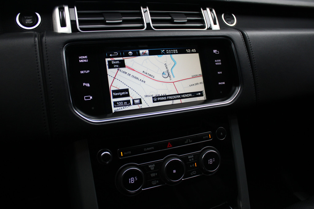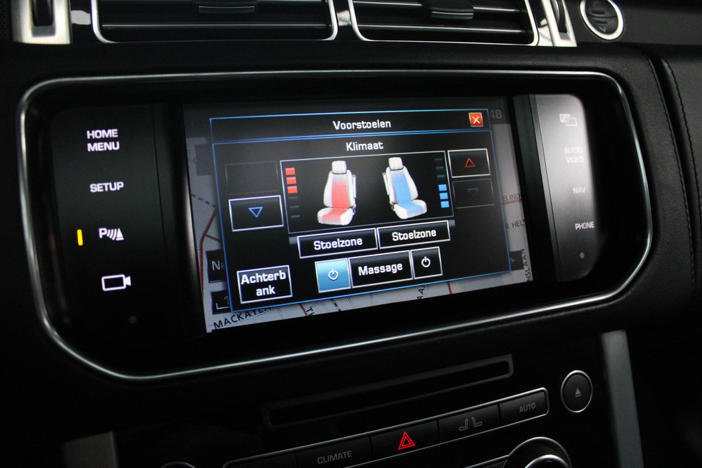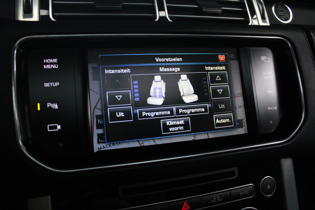 Een rit met de Land Rover Range Rover is telkens weer een feestje, en dankzij zijn rijcomfort stappen u en uw passagiers na iedere rit verkwikt weer uit. Een achtcilinder dieselmotor en een automatische transmissie verzorgen de aandrijving van deze SUV. Hoge kwaliteit is ook binnenin aanwezig. Kijkt u maar naar de leren bekleding! Doe maar luxe! Neem plaats in de verwarmbare voorstoelen en voel hoe de massagefunctie zorgt voor verfrissende doorbloeding op de lange ritten. Zit u goed? De stoelen zijn eenvoudig instelbaar dankzij de elektrische bediening met geheugen. Met een druk op de knop gaat de elektrische achterklep open. Het glazen panoramadak geeft ook doordeweeks een vakantiegevoel. Wat een licht en zicht! Ook de passagiers achterin ervaren het ultieme comfort, dankzij de verwarmde achterbank. Verder is de Land Rover uitgerust met: 21 inch lichtmetalen velgen, bi-xenon koplampen, zwarte hemelbekleding, extra getint glas, elektrisch bediende, verwarmde en inklapbare buitenspiegels en elektrisch verstelbare achterbank.