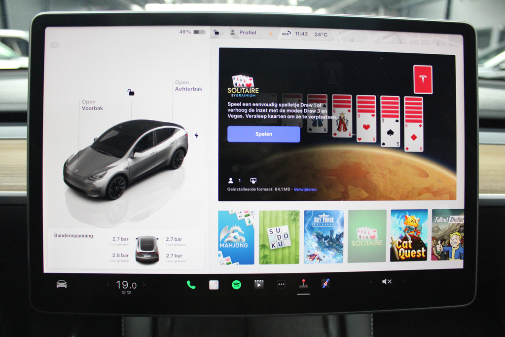 Adaptive cruise control houdt de ingestelde snelheid vast en houdt automatisch afstand tot uw voorligger. Als u regelmatig met een aanhanger of een fietsendrager op pad bent, is de afneembare trekhaak een praktische extra. De speciale app verbindt met Connected Services, die de status van vitale functies bijhoudt en waarschuwt als u bijvoorbeeld moet tanken, de bandenspanning moet controleren of olie moet bijvullen. Qua muziekbeleving onderweg gaat deze auto ook een stevige stap verder dankzij het high performance audiosysteem. U verwacht natuurlijk electronic climate control in deze auto, en die is er dan ook. Met dashboard met spraakbediening, full map navigatiesysteem, lederen sportstuur, DAB+, keyless entry en automatisch dimmende buitenspiegels is deze Tesla helemaal compleet.