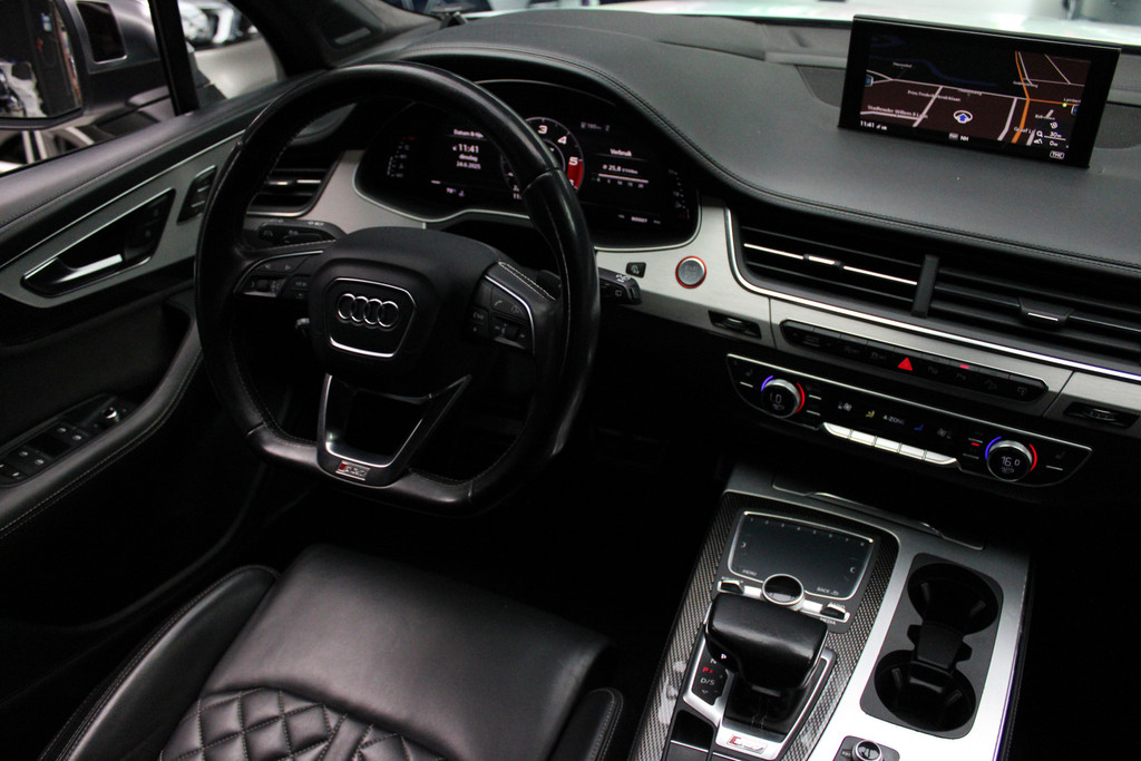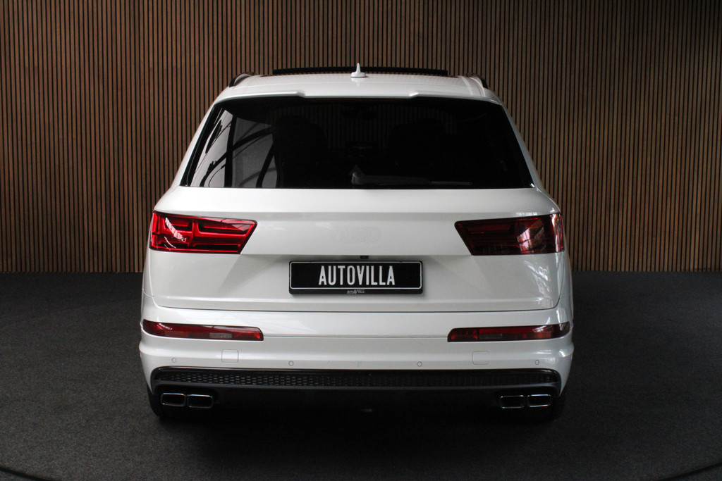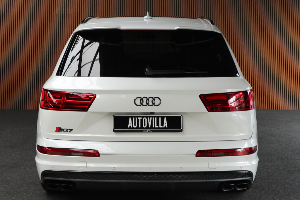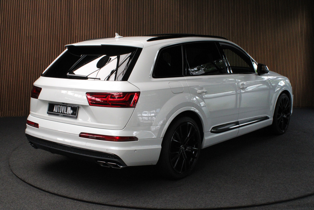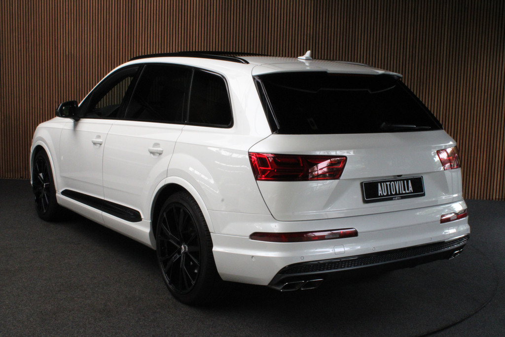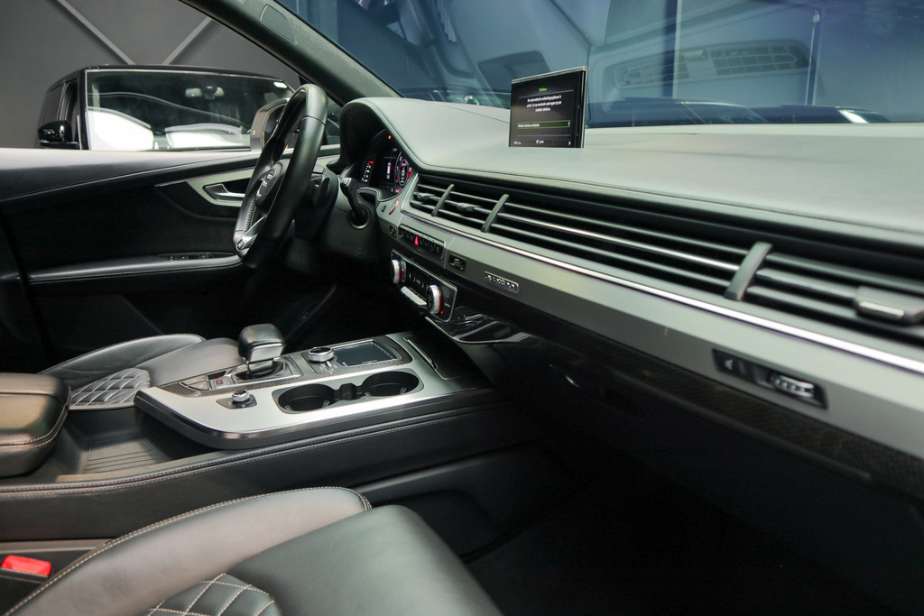 Van uw nieuwe auto verlangt u rijplezier, maar ook optimaal comfort en veiligheid. Daarom is de Audi Q7 de auto die u zoekt. Omdat het oog ook wat wil, is de s-line styling een heel aantrekkelijke plus. De automatische transmissie en de achtcilinder dieselmotor maken het autorijden snel en comfortabel. Even een paar wel héél aantrekkelijke pluspunten van deze fraaie auto: een elektrisch bediend glazen panorama dak, een elektrisch bedienbare achterklep en een prachtig lederen interieur! Zit u goed? De stoelen zijn eenvoudig instelbaar dankzij de elektrische bediening met geheugen. Ribbels en hobbels in de weg worden royaal gladgestreken door de aanwezige luchtvering. Waarom zou je alleen voorin behaaglijk mogen zitten? Daarom is er óók een verwarmde achterbank. De koplampen met matrix LED-verlichting geven daglichtkwaliteit zonder tegenliggers te hinderen. Bij de rijke uitrusting horen ook 20 inch lichtmetalen velgen, warmtewerend glas, instelbaar onderstel, zwarte hemelbekleding, dakspoiler en in delen neerklapbare achterbank.