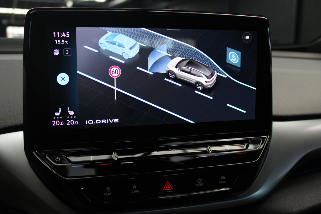 Geavanceerde veiligheidssystemen kijken tijdens elke rit met u mee en schatten continu de risico's in. Dat de auto steeds meer taken van de bestuurder overneemt, merkt u bijvoorbeeld aan het systeem voor verkeersbord-detectie in deze auto. Het Lane-keeping systeem zorgt dat u mooi binnen de lijntjes blijft. Ongemerkt buiten de rijstrook komen is er niet meer bij. Deze Volkswagen ID.4 blijft altijd alert. Zo wordt gebruik gemaakt van forward collision warning. Bij het mogelijke risico op een aanrijding met een voertuig voor u, slaat het systeem alarm. De veiligheid van deze auto wordt verder verhoogd door hill hold functie, vermoeidheidsherkenning, autonoom remsysteem en bandenspanningcontrolesysteem.