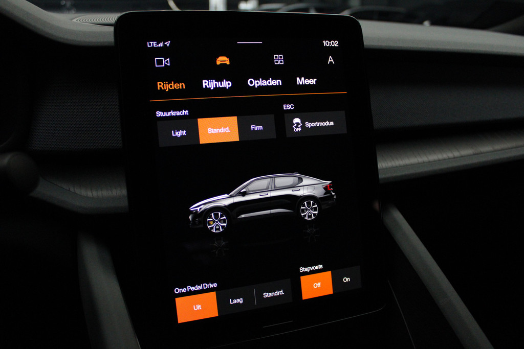 Wat ook opvalt, is de strakke en overzichtelijke informatie die het digitale dashboard levert. Met de 360 graden camera kunt u elk obstakel of gevaar rondom de auto detecteren, wat uw veiligheid verhoogt. Met adaptive cruise control houdt de auto zelfstandig afstand tot uw voorligger. Een veiligheidsverhogende optie waarmee u comfortabel onderweg bent. Spraaksturing betekent dat u verschillende functies met uw stem kunt bedienen. Met Connected Services wordt iedere rit nóg veiliger. U bent in deze Polestar ook voorzien van premium audiosysteem, full map navigatiesysteem, achteropkomend verkeer waarschuwing, automatische airconditioning, draadloos opladen en DAB ontvangst.