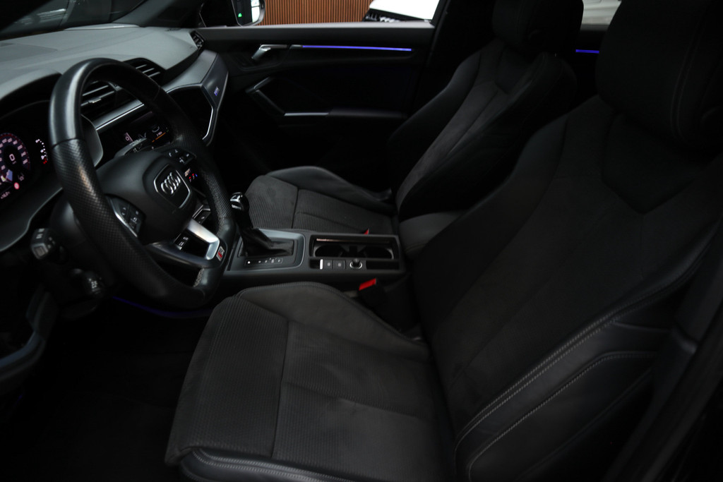 Ontspannen en zorgeloos autorijden, dat doet u met deze Audi Q3 Sportback. Deze auto wíl gewoon gezien worden: kijk maar naar de sportieve S-Line styling. De uitstekende prestaties van deze auto komen van de viercilinder benzinemotor en de automatische transmissie. De auto is uitgerust met lederen bekleding. De verwarmbare voorstoelen benadrukken nog maar eens dat we hier te maken hebben met een regelrechte verwenauto voor bestuurder en bijrijder. De sportstoelen geven u veel zitsteun. De elektrische achterklep opent met een druk op de knop, zodat u gemakkelijk toegang heeft tot de bagageruimte. Onderweg heeft u extra veel te zien dankzij het glazen panoramadak. In deze auto profiteert u onder andere ook van: 19 inch lichtmetalen velgen, Full LED koplampen, warmtewerend glas, Audi instelbaar onderstel (drive select), zwarte hemelbekleding en in delen neerklapbare achterbank.