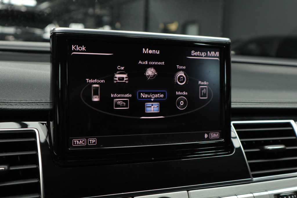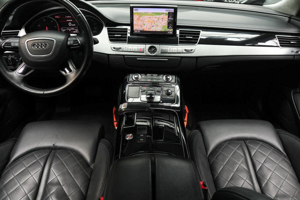 Een hoge mate van degelijkheid, uitstekende wegligging en veel comfort; het zijn unieke eigenschappen waarmee Duitse auto's zich onderscheiden. Dat geldt ook voor deze Audi A8 uit 2012. Met zijn dieselmotor en automatische transmissie is dit een prima auto voor nog vele kilometers. Het kan niet op: een fraai lederen interieur, zeeën van licht met het elektrisch bediende glazen panorama dak en probleemloos in- en uitladen met de elektrisch bedienbare achterklep. Zit u goed? De stoelen zijn eenvoudig instelbaar dankzij de elektrische bediening met geheugen. Gewoon, omdat het kan. Deze Audi A8 heeft zelfs een verwarmde achterbank. Met de krachtige xenonverlichting heeft u optimaal zicht in het donker. Deze Audi A8 komt met een ingebouwd start-stopsysteem. De motor gaat uit bij stilstaan en start direct weer als u het gaspedaal aanraakt. Lekker zuinig! U wordt in deze auto ook getrakteerd op elektrische zonnerollo voor de achterruit, adaptief onderstel en geluidsisolerende ramen.