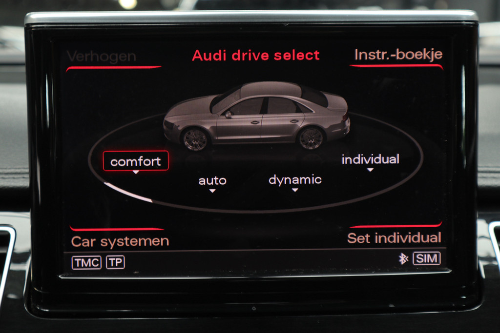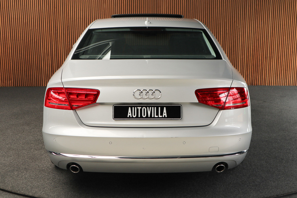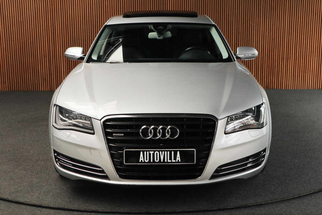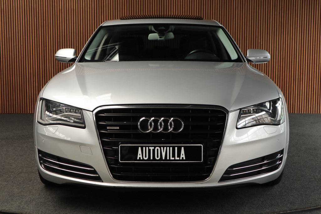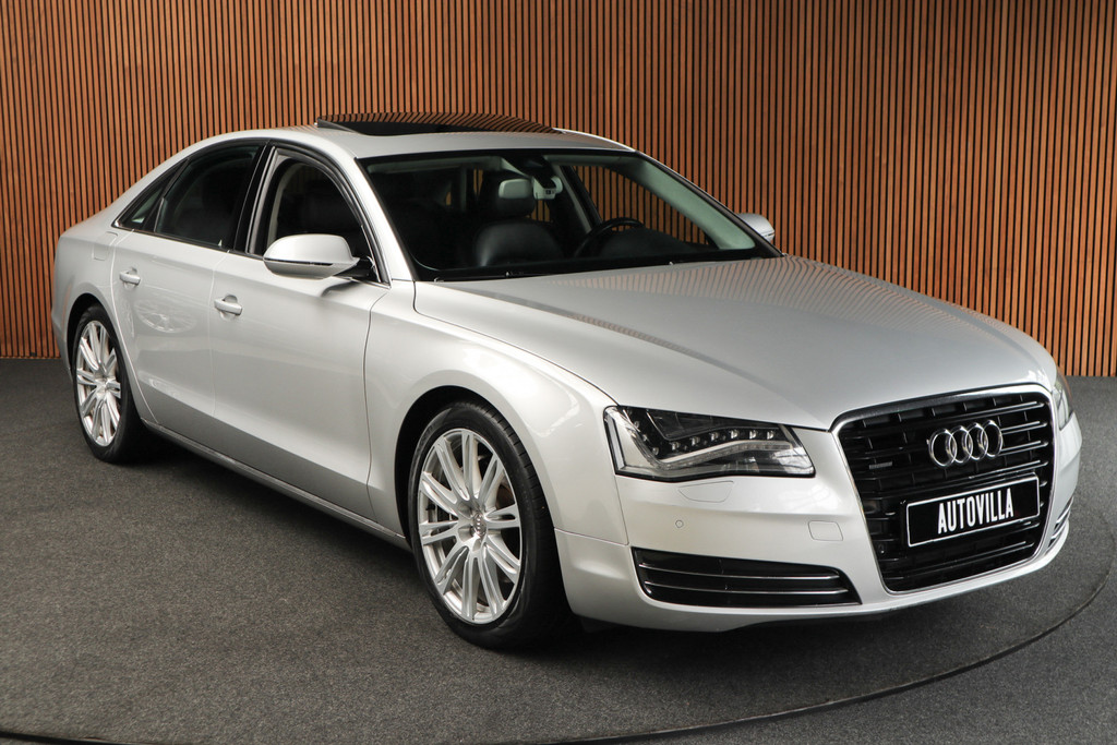 Een hoge mate van degelijkheid, uitstekende wegligging en veel comfort; het zijn unieke eigenschappen waarmee Duitse auto's zich onderscheiden. Dat geldt ook voor deze Audi A8 uit 2012. Met zijn dieselmotor en automatische transmissie is dit een prima auto voor nog vele kilometers. Het kan niet op: een fraai lederen interieur, zeeën van licht met het elektrisch bediende glazen panorama dak en probleemloos in- en uitladen met de elektrisch bedienbare achterklep. Zit u goed? De stoelen zijn eenvoudig instelbaar dankzij de elektrische bediening met geheugen. Gewoon, omdat het kan. Deze Audi A8 heeft zelfs een verwarmde achterbank. Met de krachtige xenonverlichting heeft u optimaal zicht in het donker. Deze Audi A8 komt met een ingebouwd start-stopsysteem. De motor gaat uit bij stilstaan en start direct weer als u het gaspedaal aanraakt. Lekker zuinig! U wordt in deze auto ook getrakteerd op elektrische zonnerollo voor de achterruit, adaptief onderstel en geluidsisolerende ramen.