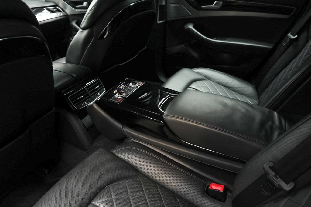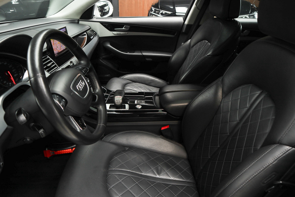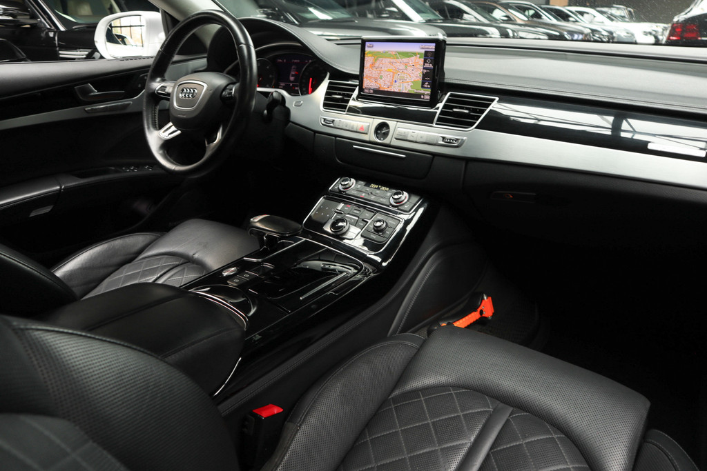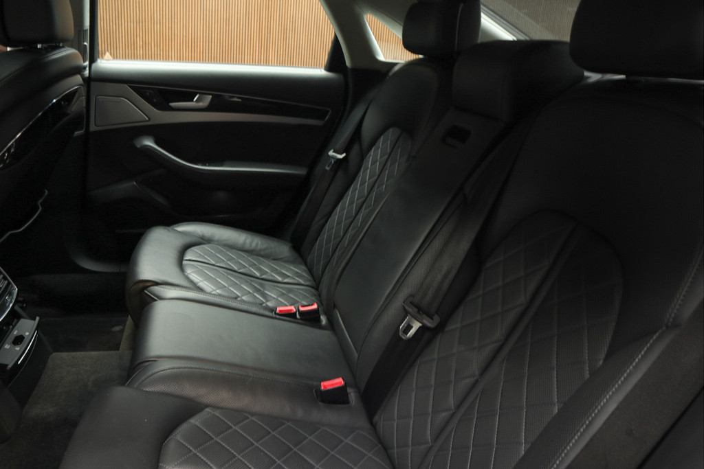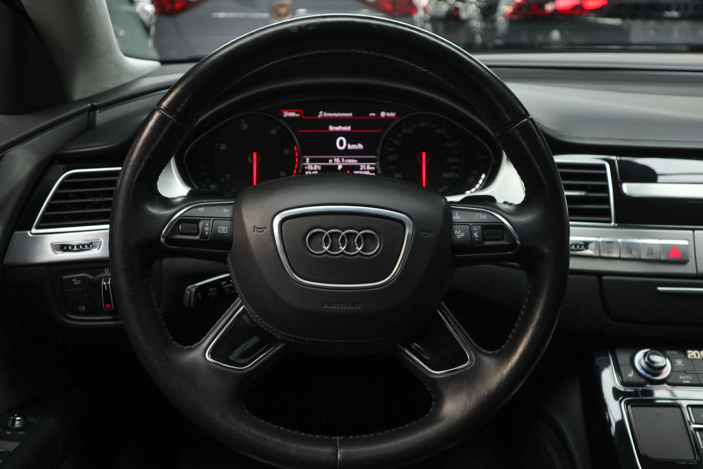 Een hoge mate van degelijkheid, uitstekende wegligging en veel comfort; het zijn unieke eigenschappen waarmee Duitse auto's zich onderscheiden. Dat geldt ook voor deze Audi A8 uit 2012. Met zijn dieselmotor en automatische transmissie is dit een prima auto voor nog vele kilometers. Het kan niet op: een fraai lederen interieur, zeeën van licht met het elektrisch bediende glazen panorama dak en probleemloos in- en uitladen met de elektrisch bedienbare achterklep. Zit u goed? De stoelen zijn eenvoudig instelbaar dankzij de elektrische bediening met geheugen. Gewoon, omdat het kan. Deze Audi A8 heeft zelfs een verwarmde achterbank. Met de krachtige xenonverlichting heeft u optimaal zicht in het donker. Deze Audi A8 komt met een ingebouwd start-stopsysteem. De motor gaat uit bij stilstaan en start direct weer als u het gaspedaal aanraakt. Lekker zuinig! U wordt in deze auto ook getrakteerd op elektrische zonnerollo voor de achterruit, adaptief onderstel en geluidsisolerende ramen.