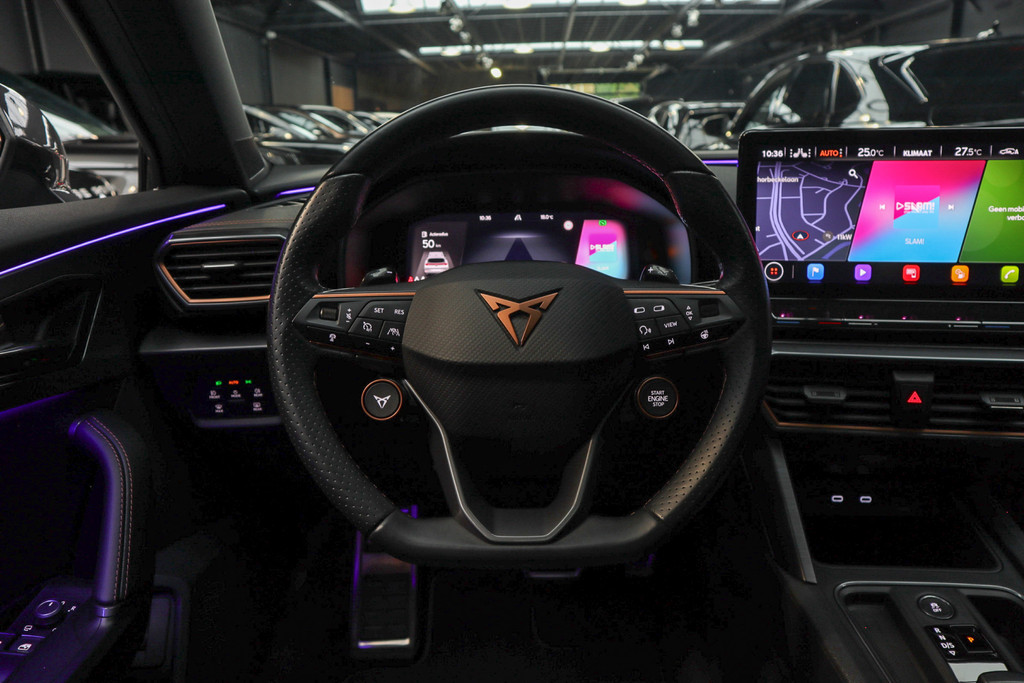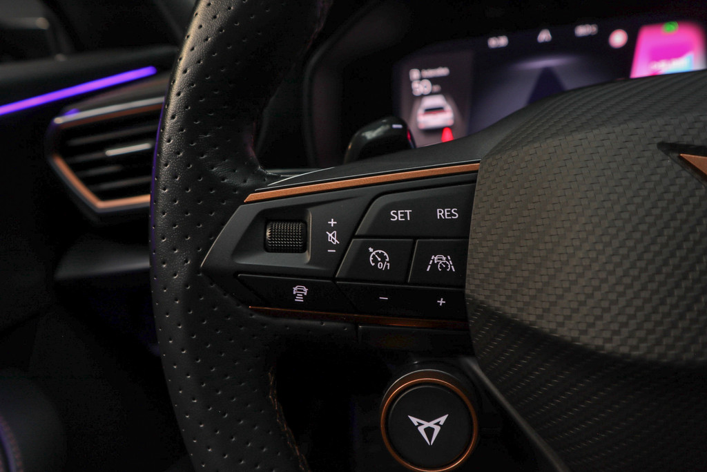 Met de nieuwste technologieën aan boord is deze CUPRA in staat om zelf te reageren op potentieel gevaarlijke situaties op de weg. Belangrijk voor uw veiligheid en die van uw passagiers is de verkeersbord-detectie in deze auto. Onbedoeld buiten de rijstrook raken wordt voorkomen door het Lane-keeping systeem. Een belangrijk veiligheidssysteem in deze auto is de vermoeidheidsherkenning, die u een duidelijk signaal geeft wanneer u achter het stuur in slaap dreigt te vallen. U bent mede dankzij dodehoekdetectie, hill hold functie, autonoom remsysteem en bandenspanningcontrolesysteem steeds veilig onderweg.