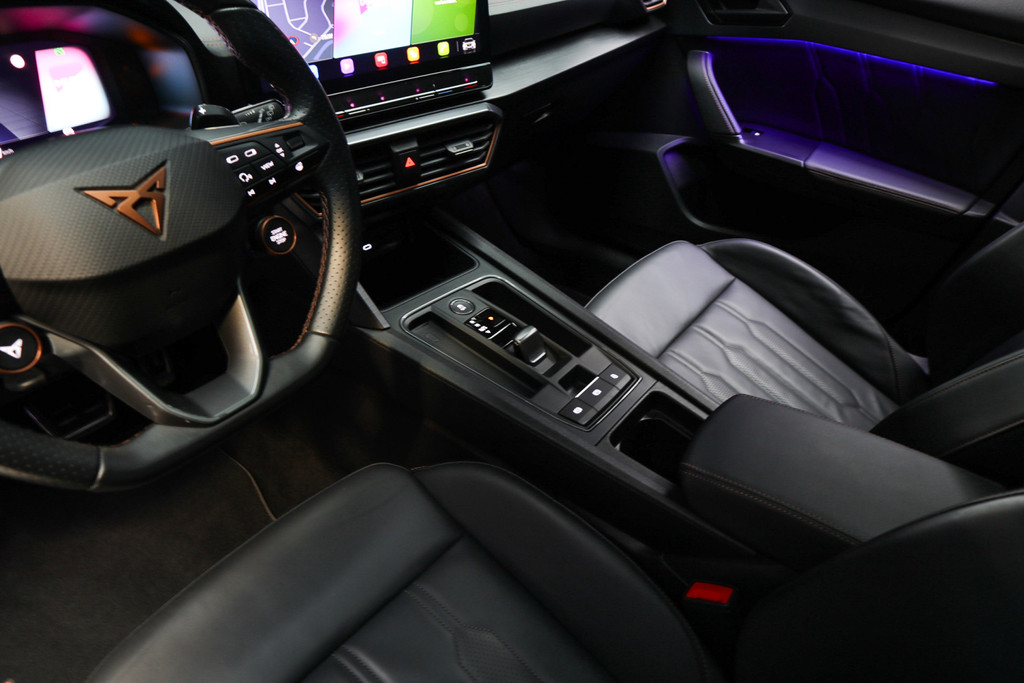 Deze CUPRA Formentor gaat met gemak nog vele, vele, vele tienduizenden kilometers mee. Energiek rijgedrag, fraaie uitstraling en een plezier om in te rijden, deze CUPRA Formentor. Deze goed onderhouden auto is van de eerste eigenaar. De viercilinder benzinemotor in combinatie met de automatische transmissie maken het rijden met deze CUPRA tot een waar feest. Even een paar wel héél aantrekkelijke pluspunten van deze fraaie auto: een elektrisch bediend glazen panorama dak, een elektrisch bedienbare achterklep en een prachtig lederen interieur! In de verwarmbare voorstoelen zitten is elke keer een welkom gevoel. Ziet er goed uit, die sportstoelen. Maar waar het om gaat, is de solide zit onder alle omstandigheden. Met de krachtige xenonverlichting heeft u optimaal zicht in het donker. Bij de zeer complete uitrusting van deze auto behoren ook LED koplampen, adaptief dempingsysteem, zwarte hemelbekleding, donker getint glas achter, in delen neerklapbare achterbank en LED-achterlichten.