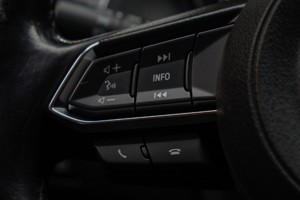 Soepel inparkeren gaat gemakkelijker dan u verwacht dankzij de achteruitrijcamera. Qua muziekbeleving onderweg gaat deze auto ook een stevige stap verder dankzij het high performance audiosysteem. Het hoort bij een intelligente auto als deze dat hij zelf in staat is om zijn omgeving in de gaten te houden. Dat doet deze Mazda met een automatisch inschakelbare verlichting en een regensensor. Relaxt rijden is meegeleverd in de vorm van cruise control. Het onhandige gevoel van eerst graven naar de autosleutels om in te kunnen stappen is voorbij dankzij de keyless entry. U bent in deze Mazda ook voorzien van met leder bekleed dashboard, dashboard met spraakbediening, full map navigatiesysteem, DAB ontvangst, automatisch dimmende binnenspiegel en isofix-aansluiting.