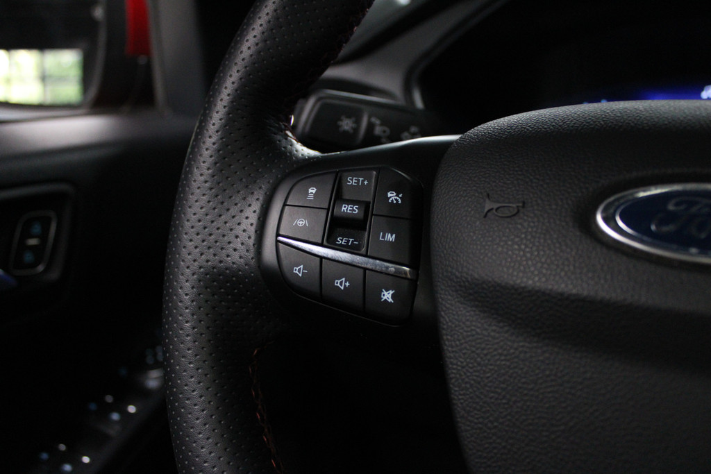 Rij- en route-info wordt perfect in beeld gebracht door het digitale dashboard. Het inventieve 360 graden camerasysteem op deze auto heeft de functie om u assistentie te bieden in nauwe ruimtes en straten, waar het achteruit rijden vaak een uitdaging is. Adaptive cruise control houdt de ingestelde snelheid vast en houdt automatisch afstand tot uw voorligger. Slimme spraakbesturing herkent gesproken opdrachten en voert ze uit. Via uw smartphone en Connected Services checkt u eenvoudig de belangrijke functies van de auto, overal en altijd. U bent in deze Ford ook voorzien van premium audiosysteem, full map navigatiesysteem, WIFI-hotspot, achteropkomend verkeer waarschuwing, automatische airconditioning en audiobediening op het stuur.
