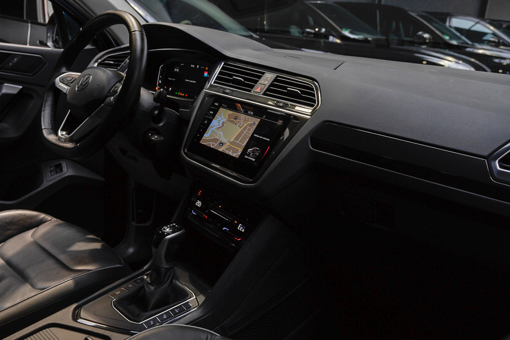 U rijdt gemakkelijk, comfortabel en zonder zorgen met deze dealer onderhouden Volkswagen Tiguan. Luxe exterieur en een beauty van een binnenkant: allemaal door de Elegance styling. Volkswagen-rijders weten het: een VW is gebouwd voor duurzaamheid. Deze Tiguan is een dealeronderhouden auto en hij verkeert in een prima conditie. Een krachtige viercilinder benzinemotor zorgt voor de aandrijving van deze SUV. Topklasse: daar hoort leren bekleding absoluut bij. 's Winters op pad gaan kan een behoorlijke uitdaging zijn. Daarom is deze Volkswagen Tiguan voorzien van weldadige verwarmbare voorstoelen. Ontspannen rijden begint met de juiste zit. Daar zorgen de comfortstoelen wel voor. Licht, luxe en gemak komen samen in de vorm van het elektrische bediende glazen panoramadak. De elektrisch bedienbare achterklep opent met een druk op de knop. De slimme koplampen gebruiken de allernieuwste matrix LED-verlichting. Altijd maximaal zicht, nooit verblinding bij de tegenligger. Natuurlijk behoren lichtmetalen velgen, adaptief dempingsysteem, geluidsisolerende ramen, dakspoiler, in delen neerklapbare achterbank en LED-achterlichten ook tot de uitrusting van deze complete auto.