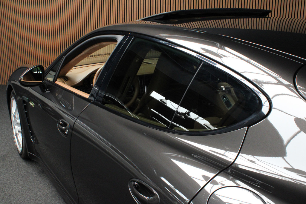 Het is een auto die er nog jaren tegenaan kan, deze Porsche Panamera die 159517 kilometer op de teller heeft staan. De krachtige benzinemotor van deze auto is gekoppeld aan een automatische transmissie. De luchtvering maakt van deze auto een klasseauto. Voelbaar, merkbaar beter. Van de diverse pluspunten is ook het lederen interieur het noemen waard. U past de stoelen moeiteloos aan, ze zijn elektrisch in te stellen en hebben bovendien een geheugen. Fun en functie wordt samengebracht in het elektrisch bedienbare glazen panoramadak. De elektrische achterklep opent met een druk op de knop, zodat u gemakkelijk toegang heeft tot de bagageruimte. Afzien is er bij deze Porsche Panamera niet bij. Zelfs achterin vinden we de verwarmde achterbank. Ook is de auto voorzien van: elektrische zonnerollo voor de achterruit, 20 inch lichtmetalen velgen, bi-xenon koplampen, adaptief dempingsysteem, donker getint glas achter en in delen neerklapbare achterbank.