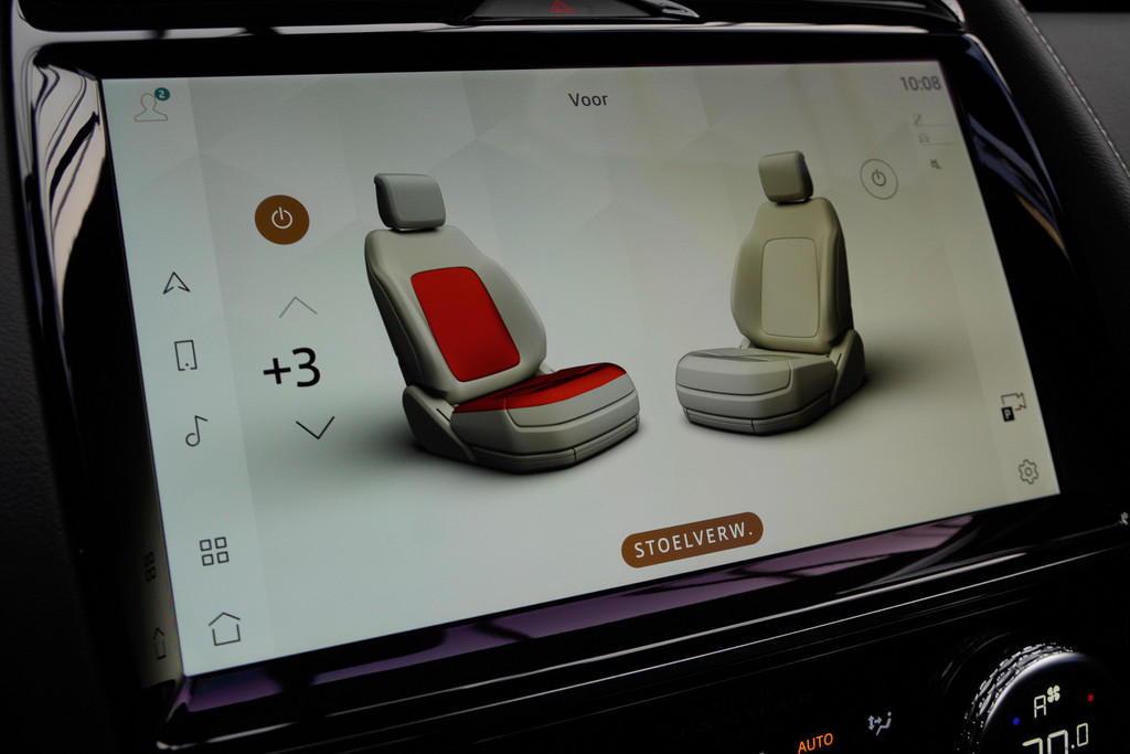 De nieuwste veiligheidssystemen komen in deze Jaguar E-PACE samen. In het instrumentarium kunt u bovendien de verkeersborden zien die u onderweg tegenkomt. Zo helpt deze Jaguar u om veiliger te rijden. Deze Jaguar E-PACE is ook behulpzaam als het gaat om een rechte koers. Het Lane-keeping systeem signaleert en corrigeert als u onbedoeld de rijstrooklijnen dreigt te overschrijden. Het forward collision warning-systeem berekent via een sensor de afstand tot het verkeer vóór u en komt in actie als er gevaar bestaat van een botsing. In deze Jaguar vinden we verder een dodehoekdetectie, hill hold functie, vermoeidheidsherkenning, autonoom remsysteem en bandenspanningcontrolesysteem.