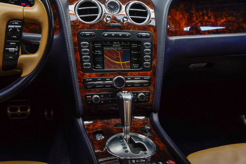 De hoogwaardige achteruitrijcamera en het display met hoge resolutie zorgen dat helemaal niets u meer ontgaat van wat er achter de auto gebeurt. Het navigatiesysteem geeft duidelijke instructies. Zo komt u veilig en vlot aan waar u moet zijn. Nooit meer te warm of te koud. De electronic climate control zorgt altijd voor de temperatuur die u kiest. Veiligheid en gemak zijn er in alle opzichten. Neem bijvoorbeeld de audiobediening op het stuur. Deze Bentley Continental Flying Spur maakt het rijden graag gemakkelijk. Daarom verzorgt de regensensor de mate van ruitreiniging die de ruitenwissers moeten leveren bij neerslag. Wat u ook in deze auto kunt vinden zijn met leder bekleed dashboard, cruise control, keyless Go, isofix-aansluiting en bekerhouder.