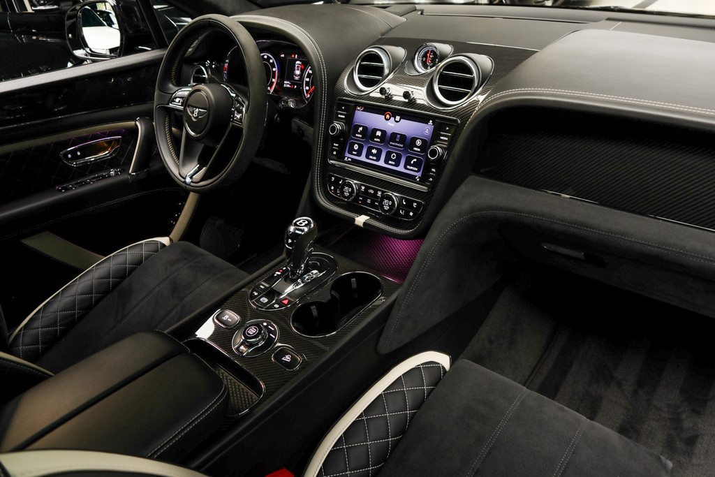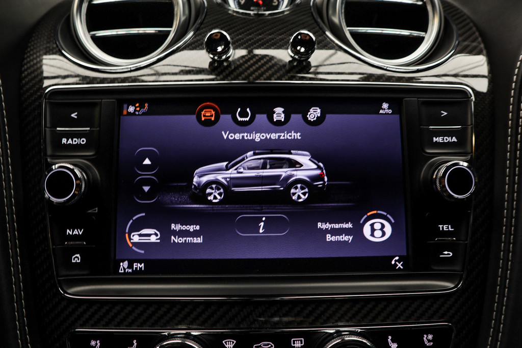 De vier camera’s rondom de auto creëren samen een onbelemmerd 360-graden uitzicht. Met adaptive cruise control houdt de auto zelfstandig afstand tot uw voorligger; een veiligheidsverhogende optie die bovendien extra comfort biedt. De onderhoudsstatus van deze auto controleert u snel en eenvoudig via uw smartphone. Het infotainmentaanbod is zeer uitgebreid. Ontspannen reizen doet u met behulp van het full-map navigatiesysteem, terwijl u muziek luistert via het audio-installatiesysteem met DAB-radio. Smartphones die draadloos kunnen opladen, halen moeiteloos een volle accu via de ingebouwde oplaadfunctie. Verder bent u in deze Bentley voorzien van een met leder bekleed dashboard, dashboard met spraakbediening, wifi-hotspot, electronic climate control, regensensor en automatisch dimmende buitenspiegels.