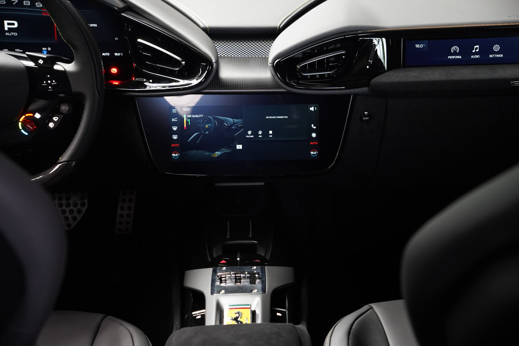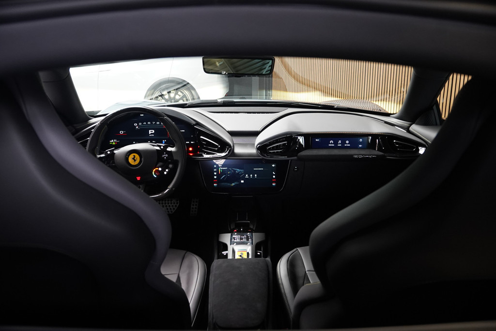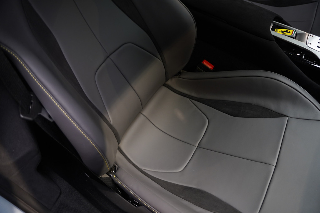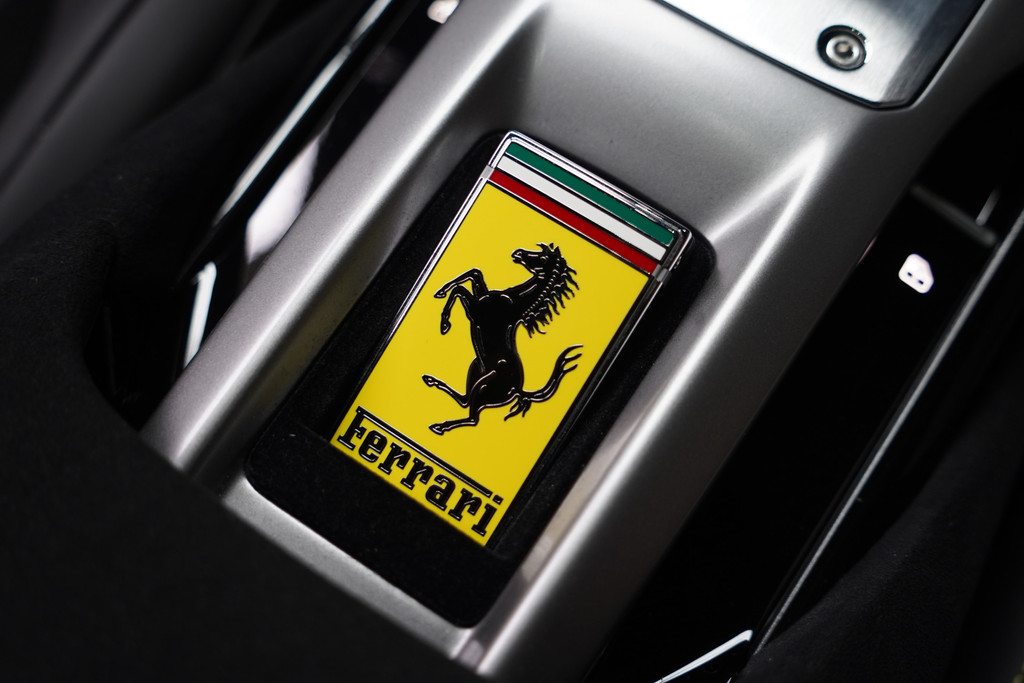Het eigentijdse interieur wordt natuurlijk helemaal volmaakt met het digitale dashboard. De 360 graden camera wordt mogelijk gemaakt door vier camera's die tezamen werken om zo een uitgebreid zicht te bieden, wat van grote waarde is bij het navigeren door smalle straatjes en parkeerplekken. Adaptive cruise control is een comfortabele en veilige optie. Het systeem reguleert de snelheid en houdt automatisch afstand tot uw voorligger. Slimme spraakbesturing herkent gesproken opdrachten en voert ze uit. Voor wie hoge eisen stelt aan geluid en akoestiek, is deze auto voorzien van een high performance audiosysteem. Deze Ferrari is voorzien van met leder bekleed dashboard, draadloos opladen, DAB+, keyless Go, JBL-soundsystem en bekerhouder.