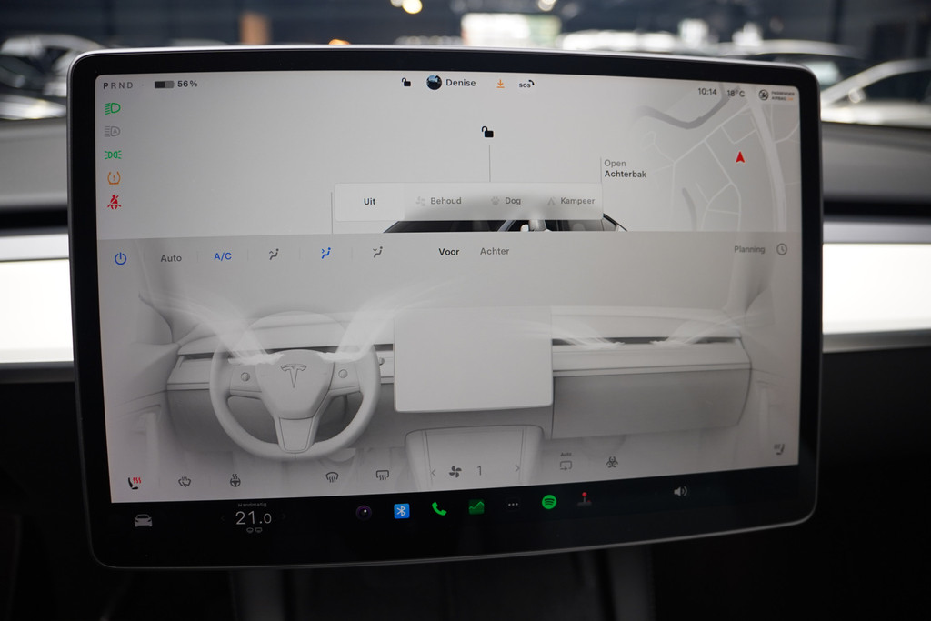Adaptive cruise control houdt de ingestelde snelheid vast en houdt automatisch afstand tot uw voorligger. Als u regelmatig met een aanhanger of een fietsendrager op pad bent, is de afneembare trekhaak een praktische extra. De speciale app verbindt met Connected Services, die de status van vitale functies bijhoudt en waarschuwt als u bijvoorbeeld moet tanken, de bandenspanning moet controleren of olie moet bijvullen. Qua muziekbeleving onderweg gaat deze auto ook een stevige stap verder dankzij het high performance audiosysteem. U verwacht natuurlijk electronic climate control in deze auto, en die is er dan ook. Met dashboard met spraakbediening, full map navigatiesysteem, lederen sportstuur, DAB+, keyless entry en automatisch dimmende buitenspiegels is deze Tesla helemaal compleet.