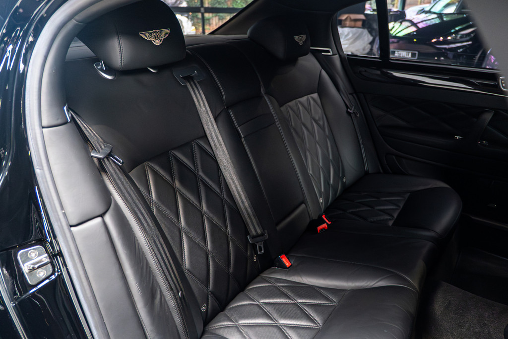 Met zijn ruimte en zijn prestaties is dit de auto die bij u past. Deze Bentley Continental Flying Spur heeft 45488 kilometer gelopen. Met zijn benzinemotor en automatische transmissie is dit een prima auto voor nog vele kilometers. De hoogwaardige uitstraling van deze auto wordt benadrukt door de lederen bekleding. Neem plaats op de comfortabele stoelen. Dankzij de elektrische bediening en het geheugen is het eenvoudig om hierin de beste zitpositie te vinden. De elektrisch bedienbare achterklep opent met een druk op de knop. Luxepaardjes en levensgenieters worden enthousiast van de verwarmde achterbank. In het donker zorgt de xenonverlichting voor een goed zicht op de weg. Bij de uitrusting van deze Bentley horen onder meer donker getint glas achter, LED-achterlichten en elektrisch verstelbare achterbank.