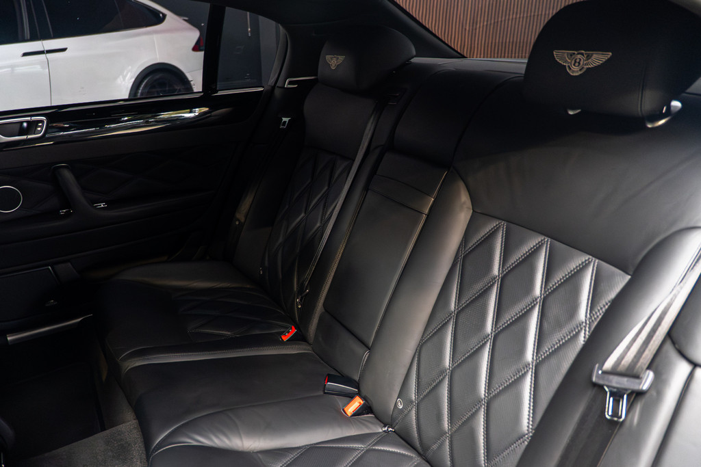 Met zijn ruimte en zijn prestaties is dit de auto die bij u past. Deze Bentley Continental Flying Spur heeft 45488 kilometer gelopen. Met zijn benzinemotor en automatische transmissie is dit een prima auto voor nog vele kilometers. De hoogwaardige uitstraling van deze auto wordt benadrukt door de lederen bekleding. Neem plaats op de comfortabele stoelen. Dankzij de elektrische bediening en het geheugen is het eenvoudig om hierin de beste zitpositie te vinden. De elektrisch bedienbare achterklep opent met een druk op de knop. Luxepaardjes en levensgenieters worden enthousiast van de verwarmde achterbank. In het donker zorgt de xenonverlichting voor een goed zicht op de weg. Bij de uitrusting van deze Bentley horen onder meer donker getint glas achter, LED-achterlichten en elektrisch verstelbare achterbank.