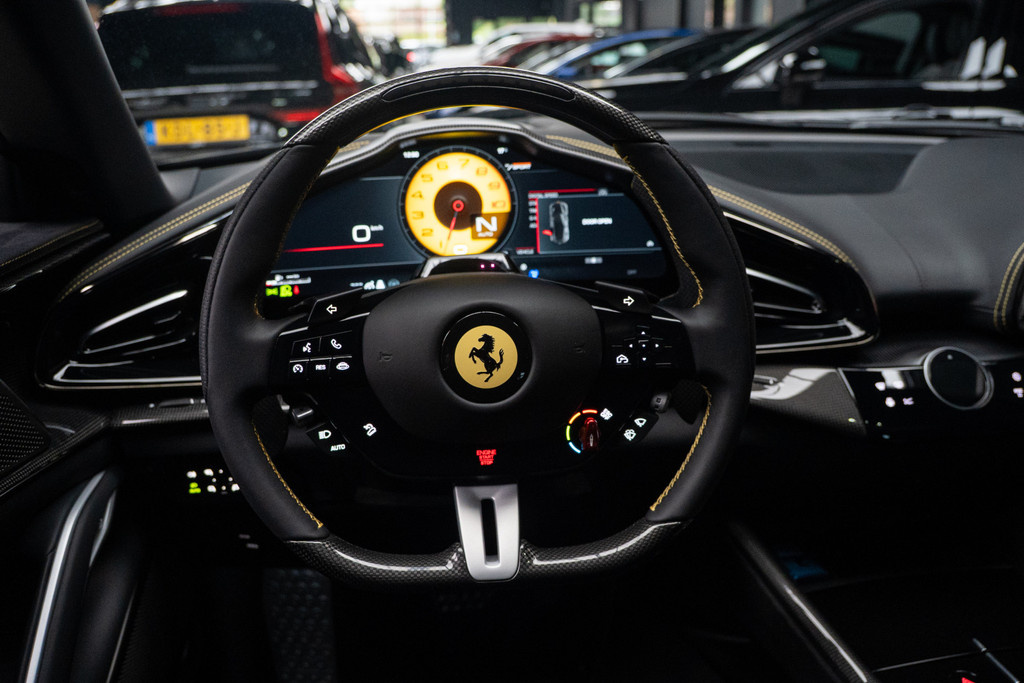 U rijdt gemakkelijk, comfortabel en zonder zorgen met deze Ferrari Purosangue. Deze gloednieuwe wagen is onmiddellijk uit voorraad leverbaar. De krachtige motor geeft deze Ferrari uitstekende prestaties. Hoge kwaliteit is ook binnenin aanwezig. Kijkt u maar naar de leren bekleding! Voorin is het 's winters genieten met de verwarmbare voorstoelen. Deze hebben bovendien een massagefunctie, zodat bestuurder en bijrijder altijd fit en soepel uitstappen. Neem plaats op de comfortabele stoelen. Dankzij de elektrische bediening en het geheugen is het eenvoudig om hierin de beste zitpositie te vinden. Een praktische extra is de elektrisch bedienbare achterklep die opent en sluit met een druk op de knop. Een heerlijke hoeveelheid daglicht zorgt voor een riant en ruimtelijk effect door het glazen panoramadak. Bij de uitrusting van deze Ferrari horen onder meer LED-koplampen, adaptief dempingsysteem, zwarte hemelbekleding, donker getint glas achter en elektrisch verstelbare achterbank.