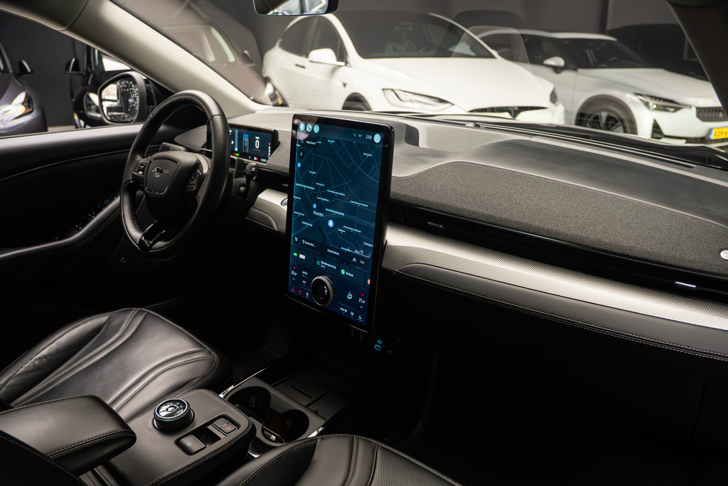 Geavanceerde technologie verpakt in aantrekkelijk design. Met deze Ford Mustang Mach-E rijdt u elektrisch in stijl. Met de elektromotor rijdt u stil en snel de toekomst in. Maar ook schoon en zuinig. Een krachtige motor geeft deze auto zijn sportieve prestaties. Een lederen interieur: een toonbeeld van luxe en comfort. En wat dacht u van de elektrisch bedienbare achterklep? In- en uitladen gaat haast vanzelf! Koude start? Niet met de verwarmbare voorstoelen! Het glazen panoramadak zorgt ervoor dat u zich omringd voelt door de omgeving. Bij de rijke uitrusting horen ook 18 inch lichtmetalen velgen, LED koplampen, geluidsisolerende ramen, in delen neerklapbare achterbank, LED-achterlichten en verstelbare lendensteunen.