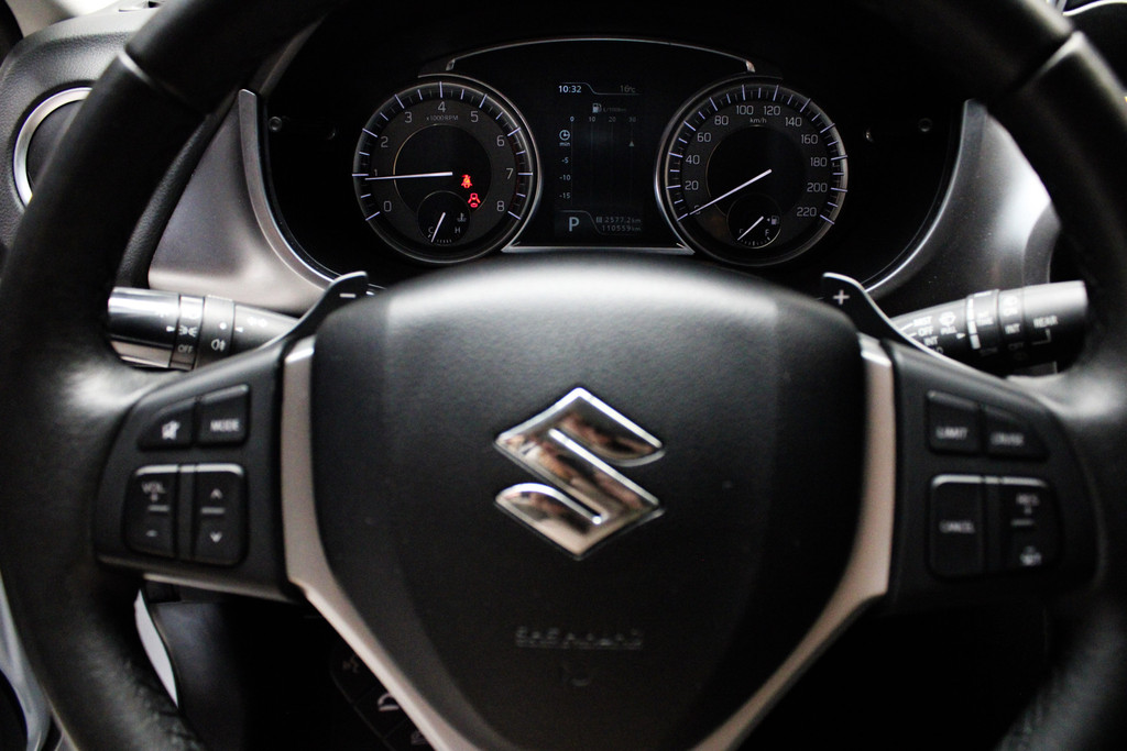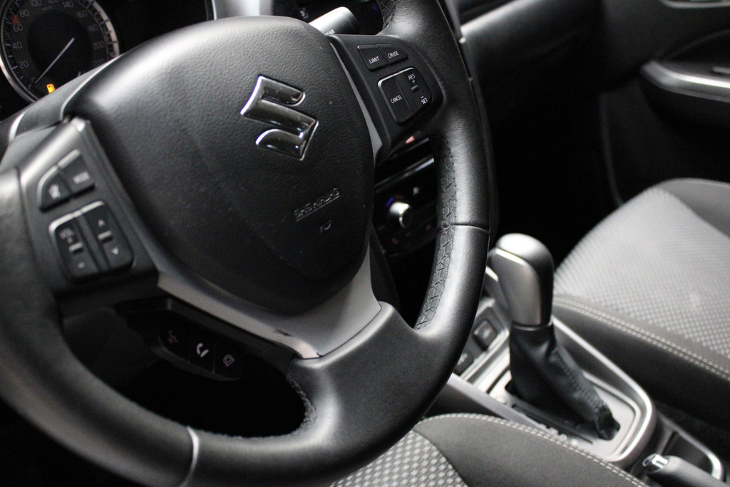 Twijfelen hoeveel ruimte u achter de auto heeft? Met de achteruitrijcamera weet u altijd hoeveel centimeter! Topkwaliteit radio, online streamingmogelijkheden onderweg - het audiosysteem maakt het allemaal mogelijk, inclusief bluetooth, usb-aansluiting en DAB+. De achteropkomend verkeer waarschuwing geeft een signaal als degene achter u te dicht op u zit. Ook handig en veilig bij het wisselen van rijbaan. De electronic climate control zorgt onder alle omstandigheden voor een prettige temperatuur. Voor de lange ritten is de cruise control een verademing. De uitrusting van deze Suzuki is met schakelpaddles aan het stuur, isofix-aansluiting, centrale deurvergrendeling met afstandsbediening, bagage afdekhoes, boordcomputer en bekerhouder behoorlijk compleet.