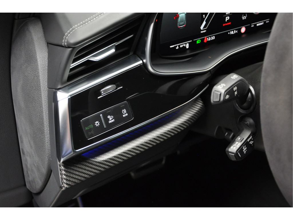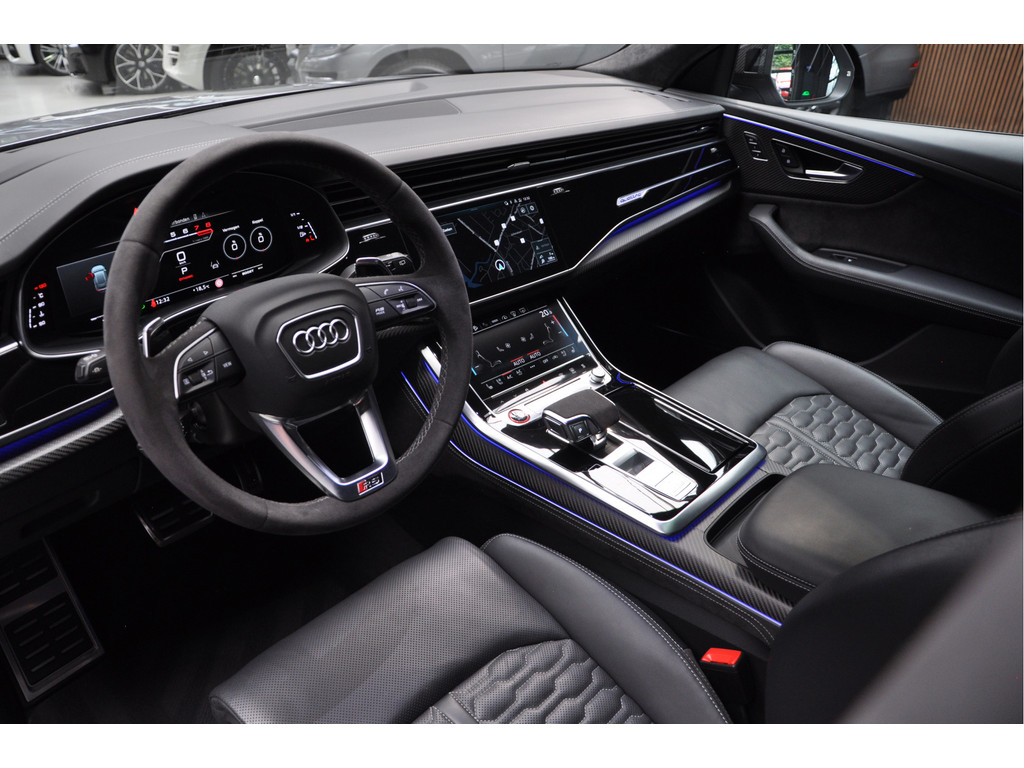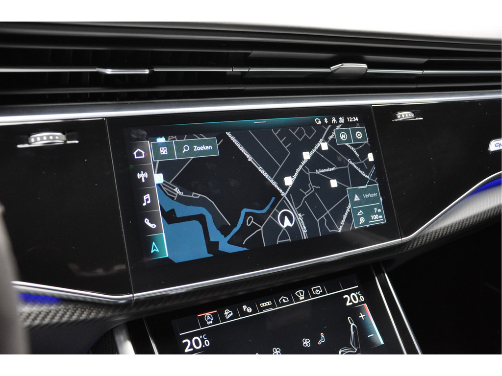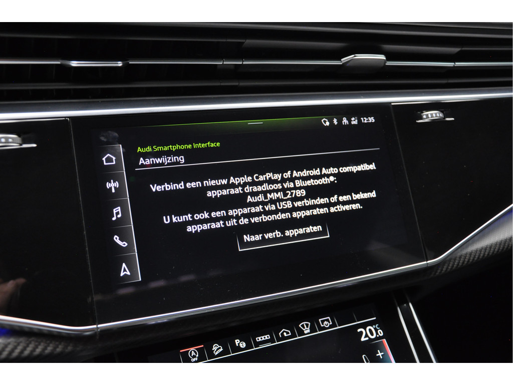 Het digitale dashboard ondersteunt u voortdurend met actuele, bruikbare informatie. Door het combineren van beelden van vier camera's, biedt de 360 graden camera een naadloos en gedetailleerd beeld van de hele omgeving rondom deze auto. Adaptive cruise control houdt de ingestelde snelheid vast en houdt afstand tot het voertuig voor u. Rijden-stilstaan, rijden-stilstaan. Niks is irritanter en vermoeiender dan filerijden. Daar heeft deze Audi RS Q8 een oplossing voor: de file assistent, die met radarmeting permanent het tempo aanpast op de voorligger. Zelfs als die stopt. Pech oplossen en zelfs voorkomen? Gaat eenvoudig. Via Connected Services heeft u alle data in de hand, gewoon op de smartphone! Extra opties op deze auto zijn: high performance audiosysteem, full map navigatiesysteem, kruisend verkeer detectie, electronic climate control, draadloos opladen en DAB ontvangst.