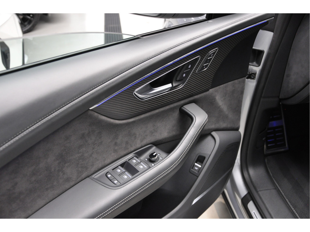 U rijdt gemakkelijk, comfortabel en zonder zorgen met deze Audi RS Q8. Het is een auto van het bouwjaar 2021. Op de teller van deze auto staat slechts 19585 kilometer. Met een achtcilinder benzinemotor en een automatische transmissie beschikt deze Audi over uitstekende prestaties. Iedere oneffenheid in de weg wordt geëlimineerd door de uitstekende luchtvering. Gladde weg, natte weg, steile weg of ruige weg? De vierwielaandrijving trekt zich er niks van aan en je vervolgt probleemloos je route met deze 4WD! Verwen uzelf met het lederen interieur in deze auto. Voorin is het 's winters genieten met de verwarmbare voorstoelen. Deze hebben bovendien een massagefunctie, zodat bestuurder en bijrijder altijd fit en soepel uitstappen. U past de stoelen moeiteloos aan, ze zijn elektrisch in te stellen en hebben bovendien een geheugen. Een heerlijk zonnetje, of indrukwekkende wolkenpartijen? Bekijk ze onbelemmerd door het elektrisch bediende glazen panoramadak. Bij de uitrusting van deze auto horen onder meer trekhaak elektronisch wegklapbaar, LED matrix verlichting, adaptief dempingsysteem, warmtewerend glas, aluminium dakrailing en elektrisch inklapbare buitenspiegels.