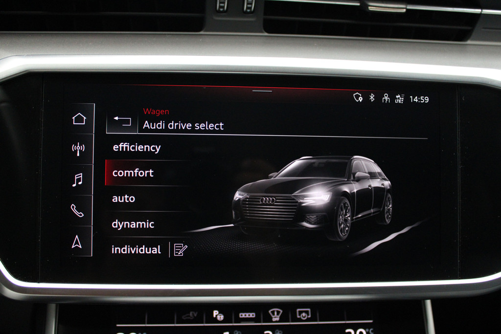 Het premiumgevoel dat deze Audi A6 Avant u geeft, is het gevolg van ver doorgevoerde kwaliteit in ieder facet. De uitgekiende techniek, de gedistingeerde vormgeving, het hoge afwerkingsniveau, het benadrukt allemaal het hoge niveau van deze auto. De hybride combi van een verbrandingsmotor en een elektromotor zorgt voor zeer laag brandstofverbruik en veel minder uitstoot. De actieve veiligheid wordt verder vergroot dankzij vierwielaandrijving. Dankzij de elektrische stoelbediening is het gemakkelijk om de optimale zitpositie te vinden. De achterklep opent automatisch met een druk op de knop. Handig als u met volle handen staat. De matrix LED-verlichting in de koplampen bestaat uit een raster van lichtpunten met maximale opbrengst. Bij tegenliggers past het systeem precies die punten aan die hinderlijk kunnen zijn. U behoudt maximaal zicht! Tot de uitrusting behoren ook sportonderstel, adaptief dempingsysteem, warmtewerend glas, in delen neerklapbare achterbank, LED-achterlichten en verstelbare lendensteunen.