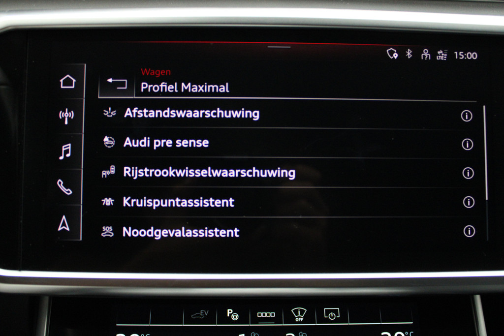 Het rijden met deze Audi wordt nog meer ontspannen dankzij de innovatieve technieken die onderweg over uw veiligheid waken. Dashboardinfo checken zonder uw ogen van de weg te halen? Dat kan met de head-up display. Een belangrijke bijdrage aan de veiligheid onderweg levert de verkeersbord-detectie in deze Audi. Keep your lane? Het Lane-keeping systeem zorgt er automatisch voor. De auto is ook uitgerust met dodehoekdetectie, forward collision warning system, Abs - anti blokkeer systeem met brake assistant en bandenspanningcontrolesysteem.