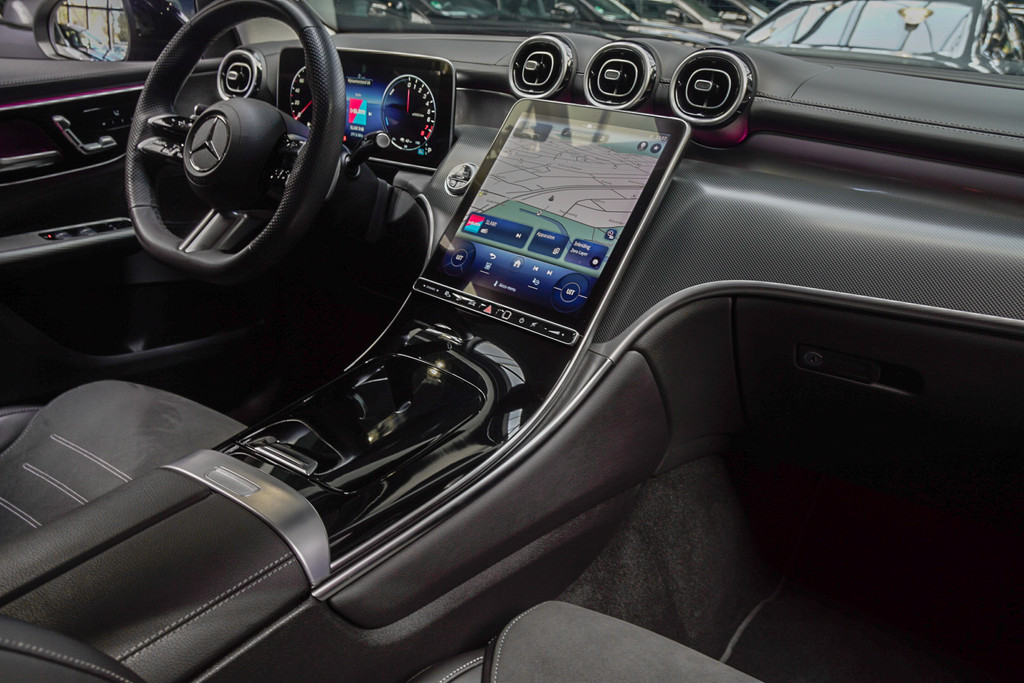 Voor het overzicht tijdens iedere rit is deze Mercedes-Benz GLC-klasse voorzien van een gemakkelijk afleesbaar digitaal dashboard. De functie van de 360 graden camera in deze auto is om u een totaaloverzicht van de omgeving te geven, ongeacht hoe smal de straat of parkeerplek is. Adaptive cruise control is een comfortabele en veilige optie. Het systeem reguleert de snelheid en houdt automatisch afstand tot uw voorligger. Een smartphone met internetverbinding legt eenvoudig overal contact met de auto. U kunt functies activeren en de conditie van de auto monitoren. Hoeveel gigabytes aan muziek wilt u meenemen? Met één stick in de usb-aansluiting kunt u uren en uren vooruit. De Mercedes-Benz is standaard voorzien van: dashboard met spraakbediening, navigatiesysteem met harde schijf, WIFI-hotspot, achteropkomend verkeer waarschuwing, automatische airconditioning en draadloos opladen.