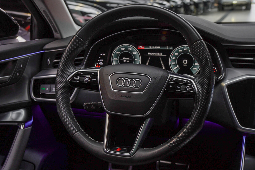 U geniet nog meer van het rijden met uw Audi omdat u wordt beschermd door intelligente veiligheidssystemen. De auto is voorzien van head-up display, waarbij alle belangrijke informatie wordt geprojecteerd in uw gezichtsveld. U hoeft uw ogen geen seconde van de weg te halen! Dat de auto steeds meer taken van de bestuurder overneemt, merkt u bijvoorbeeld aan het systeem voor verkeersbord-detectie in deze Audi. Deze Audi A6 Avant is ook behulpzaam als het gaat om een rechte koers. Het Lane-keeping systeem signaleert en corrigeert als u onbedoeld de rijstrooklijnen dreigt te overschrijden. Bovenop deze veiligheidsfeatures heeft deze Audi bovendien dodehoekdetectie, forward collision warning system, Abs - anti blokkeer systeem met brake assistant en bandenspanningcontrolesysteem.