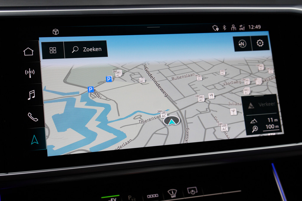 Of u nu achteruit rijdt, parkeert of een smalle straat inslaat, de 360 graden camera op deze auto, mogelijk gemaakt door vier camera's, biedt een perfect beeld van uw omgeving. Adaptive cruise control is een comfortabele en veilige optie. Het systeem reguleert de snelheid en houdt automatisch afstand tot uw voorligger. De ingebouwde file assistent is een echte helper als het vaststaat onderweg. Het systeem meet ruimte tot de auto vóór u permanent en activeert zelfs de remmen als uw voorligger stopt. Deze Audi A6 Avant is 'connected'. Belangrijke functies worden permanent gemeten en zijn uit te lezen via een speciale app, ook op afstand. De luidsprekers van het high performance audiosysteem omringen u met een uitgebalanceerd geluid. Wat u ook in deze auto kunt vinden zijn full map navigatiesysteem, kruisend verkeer detectie, draadloos opladen, DAB ontvangst, regensensor en keyless entry.