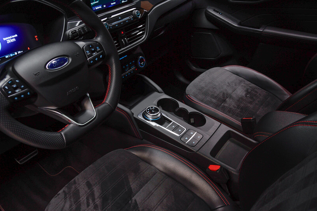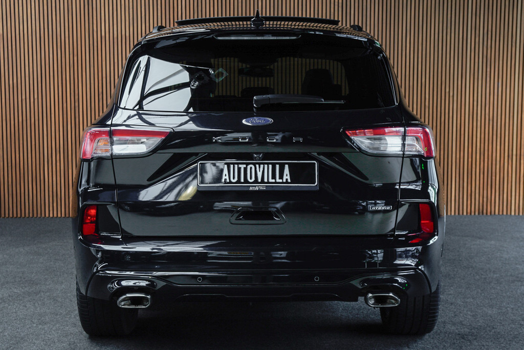 Waar anderen stoppen, zet Ford een stapje extra. In techniek, in comfort, in kostenbeheersing. Go Further, dus! Elektrisch? Benzine? Bij deze Ford Kuga kan het allebei. De hybride motor biedt de ideale keuzecombinatie. Leren bekleding versterkt de topklasse uitstraling van het interieur. Deze Ford Kuga heeft verwarmbare voorstoelen, voor zowel bestuurder als bijrijder. De sportstoelen geven het interieur van deze Kuga een super strakke en sportieve uitstraling. Daglicht valt vrij binnen door het elektrisch bediende glazen panoramadak. Een praktische extra is de elektrisch bedienbare achterklep die opent en sluit met een druk op de knop. Laat ze achterin ook maar genieten: deze Ford Kuga is uitgevoerd met een verwarmde achterbank. Bij de rijke uitrusting horen ook LED koplampen, sportonderstel, geluidsisolerende ramen, zwarte hemelbekleding, in delen neerklapbare achterbank en LED-achterlichten.