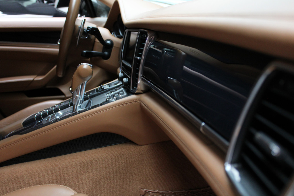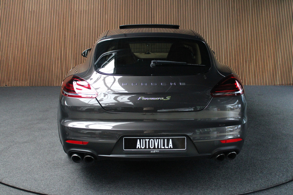 Het is een auto die er nog jaren tegenaan kan, deze Porsche Panamera die 159517 kilometer op de teller heeft staan. De krachtige benzinemotor van deze auto is gekoppeld aan een automatische transmissie. De luchtvering maakt van deze auto een klasseauto. Voelbaar, merkbaar beter. Van de diverse pluspunten is ook het lederen interieur het noemen waard. U past de stoelen moeiteloos aan, ze zijn elektrisch in te stellen en hebben bovendien een geheugen. Fun en functie wordt samengebracht in het elektrisch bedienbare glazen panoramadak. De elektrische achterklep opent met een druk op de knop, zodat u gemakkelijk toegang heeft tot de bagageruimte. Afzien is er bij deze Porsche Panamera niet bij. Zelfs achterin vinden we de verwarmde achterbank. Ook is de auto voorzien van: elektrische zonnerollo voor de achterruit, 20 inch lichtmetalen velgen, bi-xenon koplampen, adaptief dempingsysteem, donker getint glas achter en in delen neerklapbare achterbank.