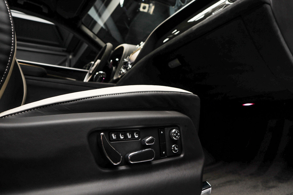 De koplampen zijn voorzien van matrix LED-verlichting, waarmee u aanzienlijk verder kunt kijken in het donker. Het systeem past zelf de lichtstraal aan zodra tegenliggers verblind zouden kunnen worden. Tot de zeer complete uitrusting van deze auto behoren ook 22-inch lichtmetalen velgen, een adaptief dempingsysteem, geluidsisolerende ramen, zwarte hemelbekleding, een dakspoiler en LED-achterlichten.