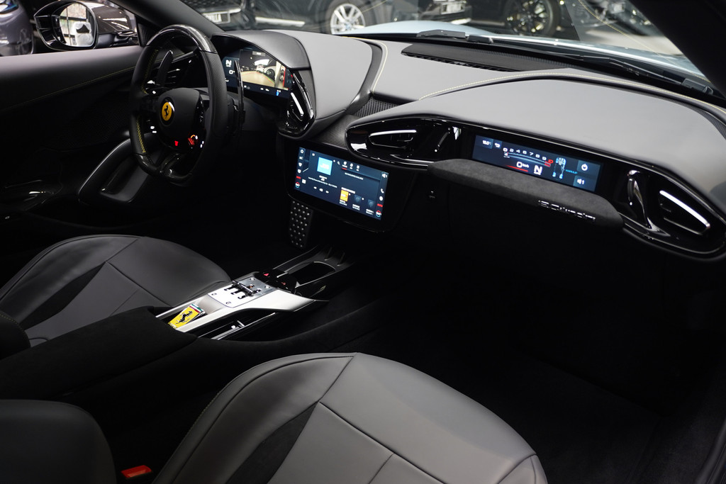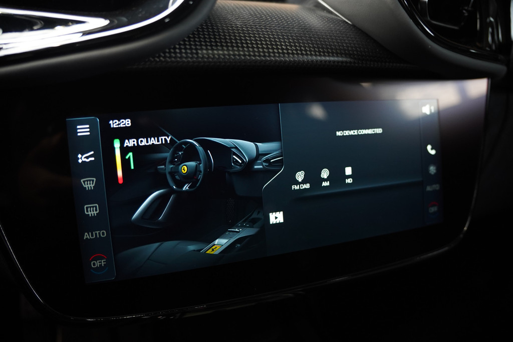 Het eigentijdse interieur wordt natuurlijk helemaal volmaakt met het digitale dashboard. De 360 graden camera wordt mogelijk gemaakt door vier camera's die tezamen werken om zo een uitgebreid zicht te bieden, wat van grote waarde is bij het navigeren door smalle straatjes en parkeerplekken. Adaptive cruise control is een comfortabele en veilige optie. Het systeem reguleert de snelheid en houdt automatisch afstand tot uw voorligger. Slimme spraakbesturing herkent gesproken opdrachten en voert ze uit. Voor wie hoge eisen stelt aan geluid en akoestiek, is deze auto voorzien van een high performance audiosysteem. Deze Ferrari is voorzien van met leder bekleed dashboard, draadloos opladen, DAB+, keyless Go, JBL-soundsystem en bekerhouder.