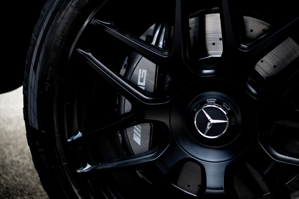 - Remklauwen in de kleur grijs met een AMG logo
