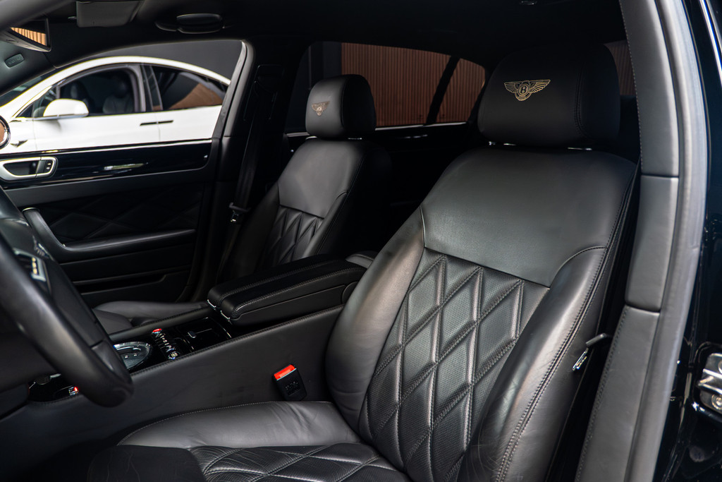 Met zijn ruimte en zijn prestaties is dit de auto die bij u past. Deze Bentley Continental Flying Spur heeft 45488 kilometer gelopen. Met zijn benzinemotor en automatische transmissie is dit een prima auto voor nog vele kilometers. De hoogwaardige uitstraling van deze auto wordt benadrukt door de lederen bekleding. Neem plaats op de comfortabele stoelen. Dankzij de elektrische bediening en het geheugen is het eenvoudig om hierin de beste zitpositie te vinden. De elektrisch bedienbare achterklep opent met een druk op de knop. Luxepaardjes en levensgenieters worden enthousiast van de verwarmde achterbank. In het donker zorgt de xenonverlichting voor een goed zicht op de weg. Bij de uitrusting van deze Bentley horen onder meer donker getint glas achter, LED-achterlichten en elektrisch verstelbare achterbank.