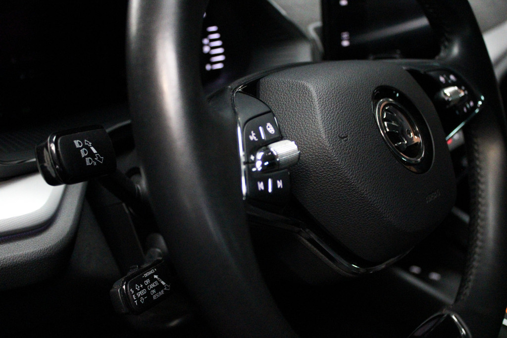 Wat ook opvalt, is de strakke en overzichtelijke informatie die het digitale dashboard levert. Parkeer en kijk niet om! De achteruitrijcamera doet dat voor u. Adaptive cruise control is een comfortabele en veilige optie. Het systeem reguleert de snelheid en houdt automatisch afstand tot uw voorligger. De radio harder of zachter zetten of iemand uit uw contactenlijst bellen. Dankzij de spraakbediening doet u dit allemaal met uw stem. De jeugd is niet los te maken van hun smartphone, en dat zie je ook aan deze jonge auto. Via een speciale app staat u overal en altijd in contact met uw vierwieler. Superhandig! Ook is de ŠKODA uitgerust met: full map navigatiesysteem, automatische airconditioning, draadloos opladen, DAB ontvangst, regensensor en keyless entry.