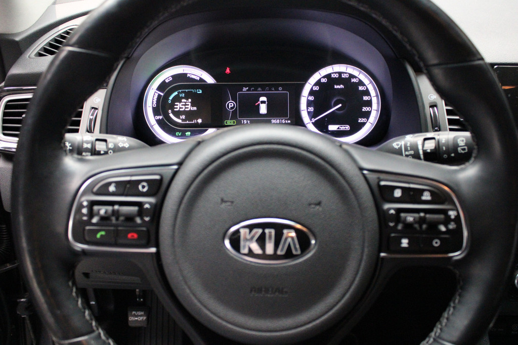 Movement that inspires, zeggen ze bij Kia. En daarmee zijn ze al enkele jaren achter elkaar een van de drie populairste merken. Met de huidige benzineprijzen is deze hybride motor van deze auto misschien wel de allerbeste oplossing. Zuiniger, schoner en toch van alle markten thuis. Ook een fijne dosis klasse is bijgeleverd, met het lederen interieur. In de verwarmbare voorstoelen zitten is elke keer een welkom gevoel. Houdt u van frisse lucht en van licht dan zit u helemaal goed met het elektrisch bediende panoramadak. Niet alleen u, maar ook uw passagiers zitten goed, dankzij de verwarmde achterbank. Ook is de auto voorzien van: 18 inch lichtmetalen velgen, LED koplampen, donker getint glas achter, in delen neerklapbare achterbank en LED-achterlichten.