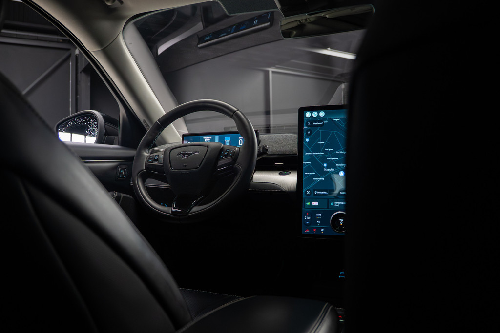 Geavanceerde technologie verpakt in aantrekkelijk design. Met deze Ford Mustang Mach-E rijdt u elektrisch in stijl. Met de elektromotor rijdt u stil en snel de toekomst in. Maar ook schoon en zuinig. Een krachtige motor geeft deze auto zijn sportieve prestaties. Een lederen interieur: een toonbeeld van luxe en comfort. En wat dacht u van de elektrisch bedienbare achterklep? In- en uitladen gaat haast vanzelf! Koude start? Niet met de verwarmbare voorstoelen! Het glazen panoramadak zorgt ervoor dat u zich omringd voelt door de omgeving. Bij de rijke uitrusting horen ook 18 inch lichtmetalen velgen, LED koplampen, geluidsisolerende ramen, in delen neerklapbare achterbank, LED-achterlichten en verstelbare lendensteunen.